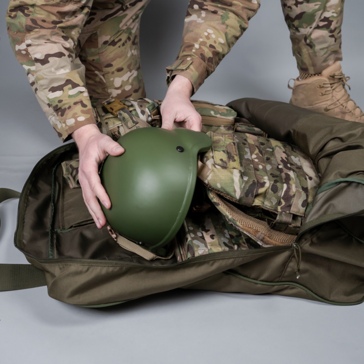 Неотъемлемым элементом военной амуниции является сумка. «Баллистика» разработала практичный и надежный вариант, который поможет хранить и транспортировать необходимое снаряжение и личные вещи. Изделие имеет универсальный дизайн, который подходит не только для военных задач, но и для туристических походов. Легкое и одновременно прочное, оно не занимает много места в сложенном виде и в случае необходимости станет дополнительным вместилищем для хранения в дороге. Особенности товара Благодаря продуманной конструкции и использованию износостойких материалов сумка сочетает высокую прочность, удобство в использовании и долговечность. К ее главным преимуществам следует отнести следующие: Изготовлена из плотной синтетической ткани с водоотталкивающим покрытием. Имеет большое верхнее отверстие на молнии и широкое раскрытие (2/3 ее высоты). Содержит основное отделение и два больших внутренних кармана, которые прикрываются клапанами на липучках велкро. Складки на боковинах карманов обеспечивают дополнительный объем и позволяют размещать в них больше вещей без потери формы сумки. Жесткие лямки не регулируются, однако позволяют удобно носить сумку на плече даже при максимальной нагрузке. Они нашиты на нее до самого дна, чем улучшают ее устойчивость к разрывам. Мощная молния с двумя бегунками гарантирует долговечность и выдерживает тяжелые условия эксплуатации. Внутренние швы усилены отделочной лентой, а при пошиве использованы прочные армированные нити. Технические характеристики Материал: Oxford 600D. Стропа: полиамид, 5 см. Размер: 62,5×56×16,5 см. Карманы: 33×55 см. Вес: 670 г. Объем: 57 л.Отзывы о Сумка "Торба" для бронежилета (Олива)