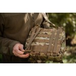 В условиях стресса и дефицита времени на поле боя критически важно упорядочить тактический инвентарь и медицинские средства. Часто это определяет успех операции и даже спасает жизнь. С сумкой-органайзером от «Баллистики» каждой вашей вещи будет отведено свое место, а ее поиск не будет отбирать драгоценные секунды. Главное – самим запомнить, где что лежит. Особенности товара Мы позаботились о том, чтобы хаотичное нагромождение важных вещей больше не доставляло вам хлопот, благодаря ряду полезных функций. Сумка состоит из одного основного отделения на молнии, в котором содержится множество больших и маленьких карманов и эластичных креплений. Два кармана на молниях (27×26 и 19×26 см) расположены на задней стенке и наслоены друг на друга. Они достаточно глубокие и широкие, чтобы вместить документы, карты, тактическую канцелярию и пр. Снаружи на них нашиты два ряда меньших карманов, разделенных швами на четыре отсека. Причем один из этих отсеков разделен на три меньшие секции. Еще один закрытый карман (27×26 см) нашит на переднюю стенку и внутри имеет три ряда открытых кармашков разного размера, также разделенных швами. Сверху над этим карманом помещена эластичная петля размером 4×6 см, куда можно установить турникет. В открытые прозрачные карманы из 2D-сетки можно класть самые востребованные вещи, к которым нужен регулярный быстрый доступ. Внутри одного из них помещена эластичная лента, поделенная швами на три отрезка. Сумка оснащена съемной лямкой, длина которой регулируется с помощью двухщелевой пряжки (от 76 до 142 см). Лямка, в свою очередь, комплектуется накладным демпфером (7,5×32 см), смягчающим давление на плечо. Четыре внешние петли на системе MOLLE позволяют прикрепить на нужный уровень ремешок от «Ладника» для дополнительной фиксации на поясе (ремешок в комплекте не идет). Если нет необходимости носить изделие на плече или через плечо, можно пришнуровать его к плитоноске на четыре стропы системы MOLLE. Спереди на сумке также находятся ячейки MOLLE, к которым можно прикрепить аптечку со стандартным набором IFAK и один-два турникетных подсумка. В три ряда ячеек и пространство между ними интегрирована липучка, которая формирует собой сплошную панель 12×16 см. На фасаде, кроме ячеек, реализованы два вида внешних креплений. Через крайние боковые ячейки накрест вплетен шоккордовый шнурок, который регулируется пластиковым фиксатором. В крайние верхние и нижние ячейки продеты две узкие стропы с ограничителями, регулируемые трехщелевыми пряжками и закрепленные резинками. И шнурок, и стропы пригодны для фиксации дождевика, каремата или других габаритных вещей. При необходимости оба крепления можно снять. Внутренние швы усилены отделочной лентой. Она также служит бортиком для всех открытых карманов, кроме одного из прозрачных карманов, где бортик держит эластичная тесьма. Два люверса на дне способствуют вентиляции и отводу лишней влаги. Благодаря этим отверстиям внутри также не задерживается песок или мелкий мусор. Технические характеристики Внешний материал: Nylon 500D/Cordura 500D. Внутренний материал: Oxford 340D, 2D-сетка. Липучка: Velcro. Демпферная накладка: 3D-сетка (200-300 г/м2), слой из пенополиэтилена (5 мм). Ременная стропа: полиамид (2; 2,5; 4 см). Фурнитура: D-образные полукольца, двухщелевые и трехщелевые пряжки, поворотные карабины, фиксатор, молнии, латунные лю