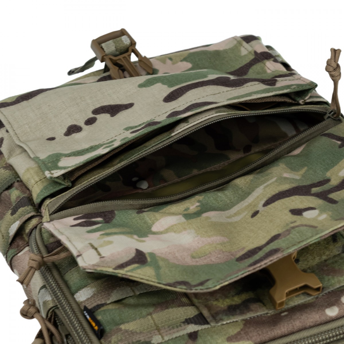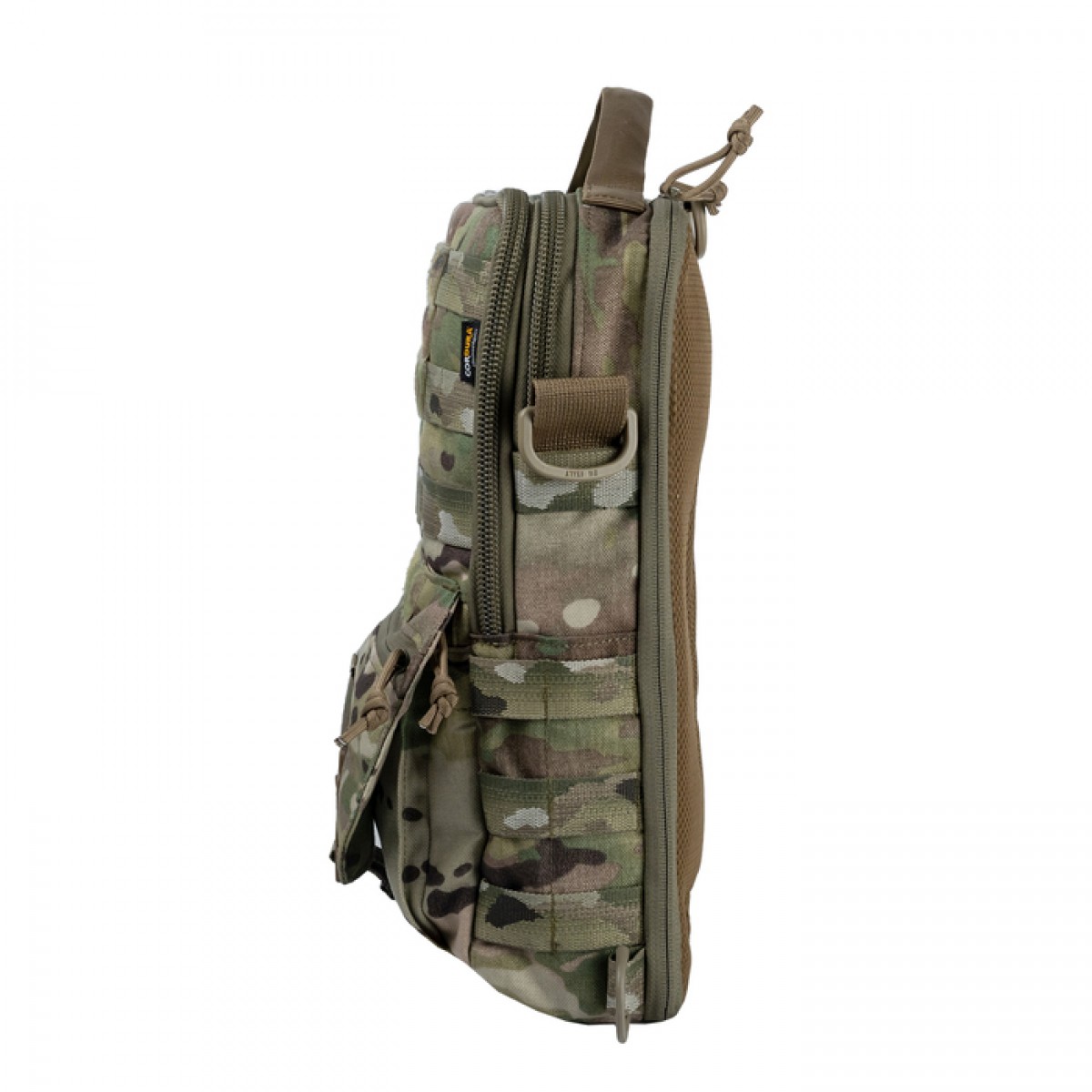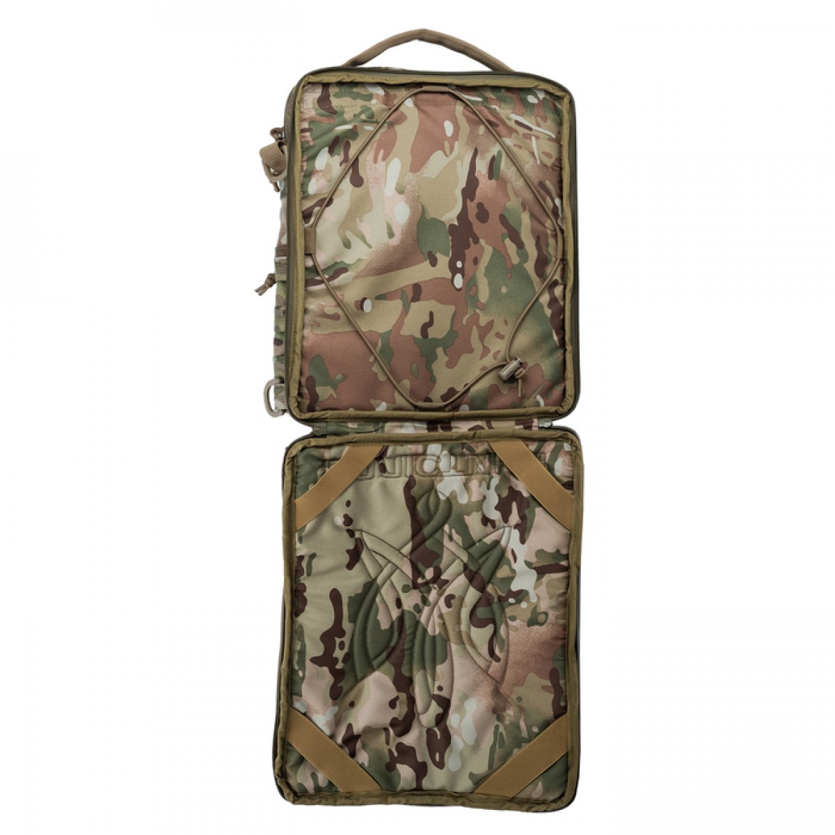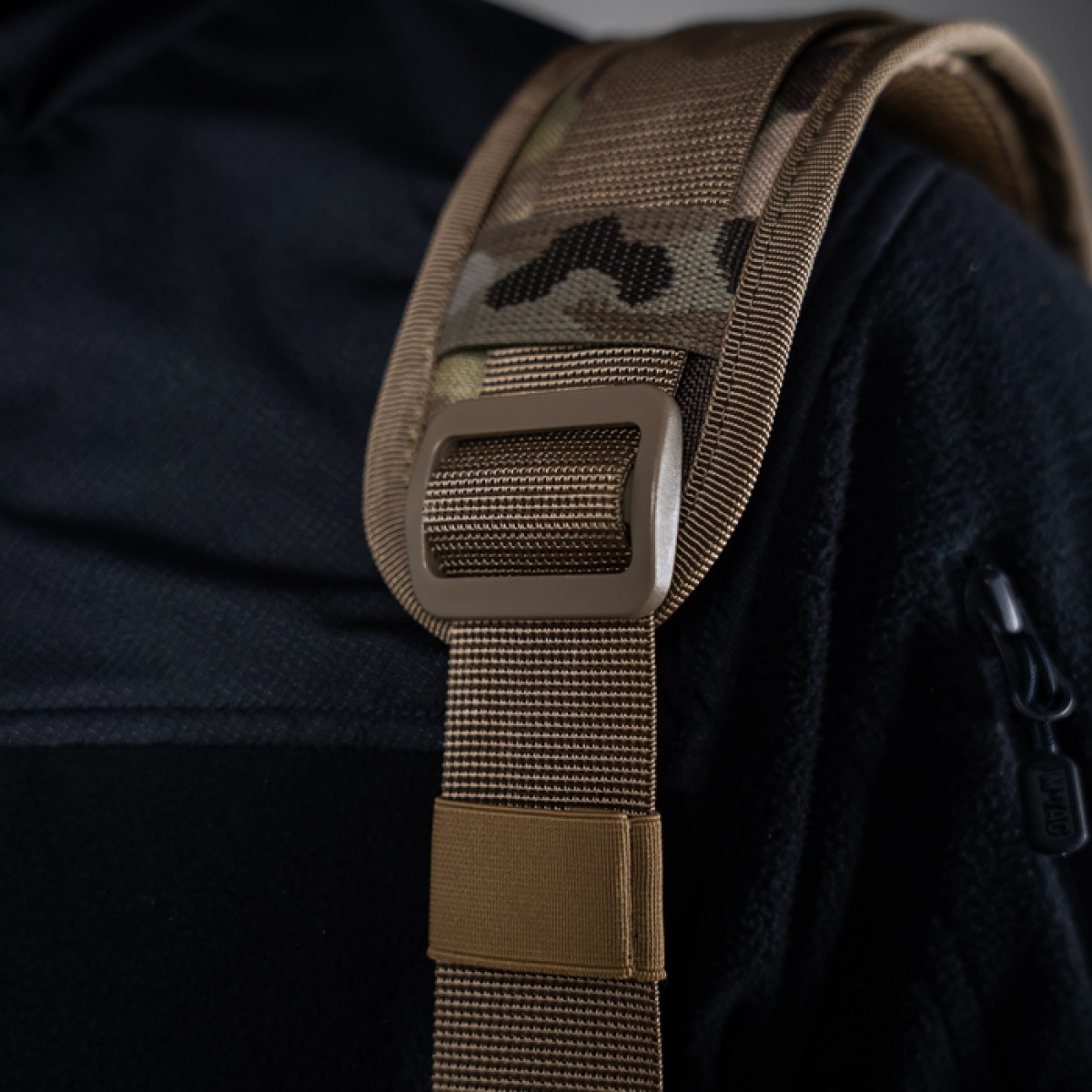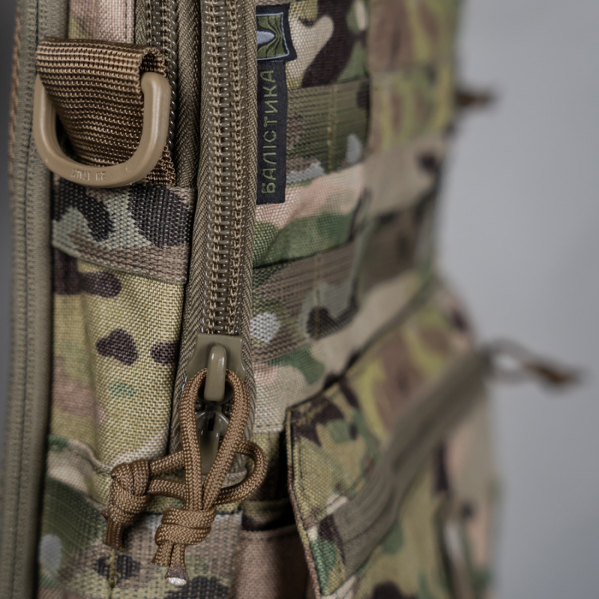 Сумка-планшет предназначена прежде всего для использования в служебных целях работниками силовых структур (ВСУ, СБУ, спецподразделения, прокуратура, полиция, охранные организации). Однако она также отлично подойдет людям, которые любят милитари-стиль и вещи с повышенной функциональностью. Особенности товара Офицерский планшет состоит из трех основных отделений и имеет множество полезных функций: Заднее отделение предназначено для планшета, нетбука или ноутбука с диагональю до 14". Его задняя стенка оснащена четырьмя уголками из эластичной ленты, в которые удобно вставлять бумаги формата А4. Передняя – эластичным шнуром с фиксатором, продетым через четыре петли в виде ромба, куда и устанавливается устройство. Отдел раскрывается с трех сторон до самого дна, чтобы обеспечить легкий доступ к креплениям и технике. Демпферы в обеих стенках и дне рюкзака защищают ее от повреждений. Среднее отделение приспособлено для хранения карт и документов, ведь в отсеках в обеих его стенках (27×33 см) вставлены пластиковые листы, которые не дают им помяться. Кроме этих отсеков, здесь также есть отдельный карман (27×30 см), в котором можно хранить, например, тактическую канцелярию. Переднее отделение создано для короткоствольного оружия и быстрого доступа к нему. Его задняя стенка наполовину покрыта мягким велкро-полотном, к которому крепятся две кобуры: одна для оружия, вторая – для двух магазинов под него. Также здесь есть скрытый отсек, который расположен под перепонкой, край которой также фиксируется на липучку. При необходимости ее можно отлепить и объединить обе части отделения в одно полноразмерное. Передняя стенка также содержит демпфер и изнутри покрыта скользящей тканью, которая облегчает извлечение оружия. К ее верхним углам пришиты две петли, которые можно использовать для быстрого раскрытия отделения, если оставить одну из них снаружи между двумя бегунками – левую или правую в зависимости от того, какая рука рабочая. Снаружи на передней панели рюкзака помещен объемный карман (23×15×4 см) с клапаном, который закрывается на фастекс. Он оснащен органайзером – перегородкой из 2D-сетки и эластичной лентой с пятью отрезками. Стропа на фастексе имеет небольшой запас длины (6 см), который позволяет регулировать уровень закрытия клапана в зависимости от наполнения кармана. Клапан также функциональный и содержит кармашек (26×15 см) на молнии, в котором есть карабин на пружине для фиксации ключей. Под клапаном помещена еще одна молния – она дает доступ к скрытому отсеку в переднем отделении. Над внешними карманами и на боковинах нашиты ячейки MOLLE в три ряда, на которые можно пришнуровать несколько подсумков. Во фронтальные ячейки интегрирована велкро-панель (12×7,5 см) для патчей/шевронов. Еще одна полоска липучки (12×2,5 см) нашита на клапанном кармане. Сумка поставляется с удобным плечевым ремнем, который регулируется по длине и может быть трансформирован в лямки рюкзака. Для его крепления в виде лямок на нижней части боковин и сверху на задней панели помещены полукольца. Ремень оснащен подвижной демпферной накладкой (34×8 см), которая уменьшает давление на плечо. При необходимости ее можно снять или добавить еще одну. Задняя панель планшета покрыта 3D-сеткой, которая способствует вентиляции и предотвращает перегрев спины при ношении его в качеств