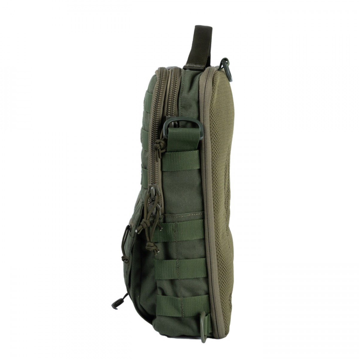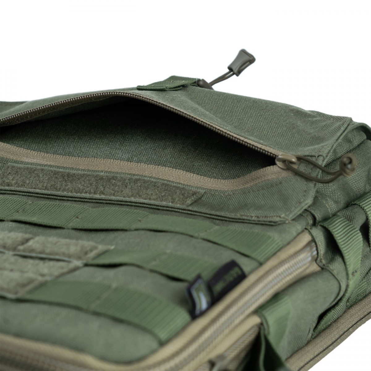 Сумка-планшет предназначена прежде всего для использования в служебных целях работниками силовых структур (ВСУ, СБУ, спецподразделения, прокуратура, полиция, охранные организации). Однако она также отлично подойдет людям, которые любят милитари-стиль и вещи с повышенной функциональностью. Особенности товара Офицерский планшет состоит из трех основных отделений и имеет множество полезных функций: Заднее отделение предназначено для планшета, нетбука или ноутбука с диагональю до 14". Его задняя стенка оснащена четырьмя уголками из эластичной ленты, в которые удобно вставлять бумаги формата А4. Передняя – эластичным шнуром с фиксатором, продетым через четыре петли в виде ромба, куда и устанавливается устройство. Отдел раскрывается с трех сторон до самого дна, чтобы обеспечить легкий доступ к креплениям и технике. Демпферы в обеих стенках и дне рюкзака защищают ее от повреждений. Среднее отделение приспособлено для хранения карт и документов, ведь в отсеках в обеих его стенках (27×33 см) вставлены пластиковые листы, которые не дают им помяться. Кроме этих отсеков, здесь также есть отдельный карман (27×30 см), в котором можно хранить, например, тактическую канцелярию. Переднее отделение создано для короткоствольного оружия и быстрого доступа к нему. Его задняя стенка наполовину покрыта мягким велкро-полотном, к которому крепятся две кобуры: одна для оружия, вторая – для двух магазинов под него. Также здесь есть скрытый отсек, который расположен под перепонкой, край которой также фиксируется на липучку. При необходимости ее можно отлепить и объединить обе части отделения в одно полноразмерное. Передняя стенка также содержит демпфер и изнутри покрыта скользящей тканью, которая облегчает извлечение оружия. К ее верхним углам пришиты две петли, которые можно использовать для быстрого раскрытия отделения, если оставить одну из них снаружи между двумя бегунками – левую или правую в зависимости от того, какая рука рабочая. Снаружи на передней панели рюкзака помещен объемный карман (23×15×4 см) с клапаном, который закрывается на фастекс. Он оснащен органайзером – перегородкой из 2D-сетки и эластичной лентой с пятью отрезками. Стропа на фастексе имеет небольшой запас длины (6 см), который позволяет регулировать уровень закрытия клапана в зависимости от наполнения кармана. Клапан также функциональный и содержит кармашек (26×15 см) на молнии, в котором есть карабин на пружине для фиксации ключей. Под клапаном помещена еще одна молния – она дает доступ к скрытому отсеку в переднем отделении. Над внешними карманами и на боковинах нашиты ячейки MOLLE в три ряда, на которые можно пришнуровать несколько подсумков. Во фронтальные ячейки интегрирована велкро-панель (12×7,5 см) для патчей/шевронов. Еще одна полоска липучки (12×2,5 см) нашита на клапанном кармане. Сумка поставляется с удобным плечевым ремнем, который регулируется по длине и может быть трансформирован в лямки рюкзака. Для его крепления в виде лямок на нижней части боковин и сверху на задней панели помещены полукольца. Ремень оснащен подвижной демпферной накладкой (34×8 см), которая уменьшает давление на плечо. При необходимости ее можно снять или добавить еще одну. Задняя панель планшета покрыта 3D-сеткой, которая способствует вентиляции и предотвращает перегрев спины при ношении его в качеств