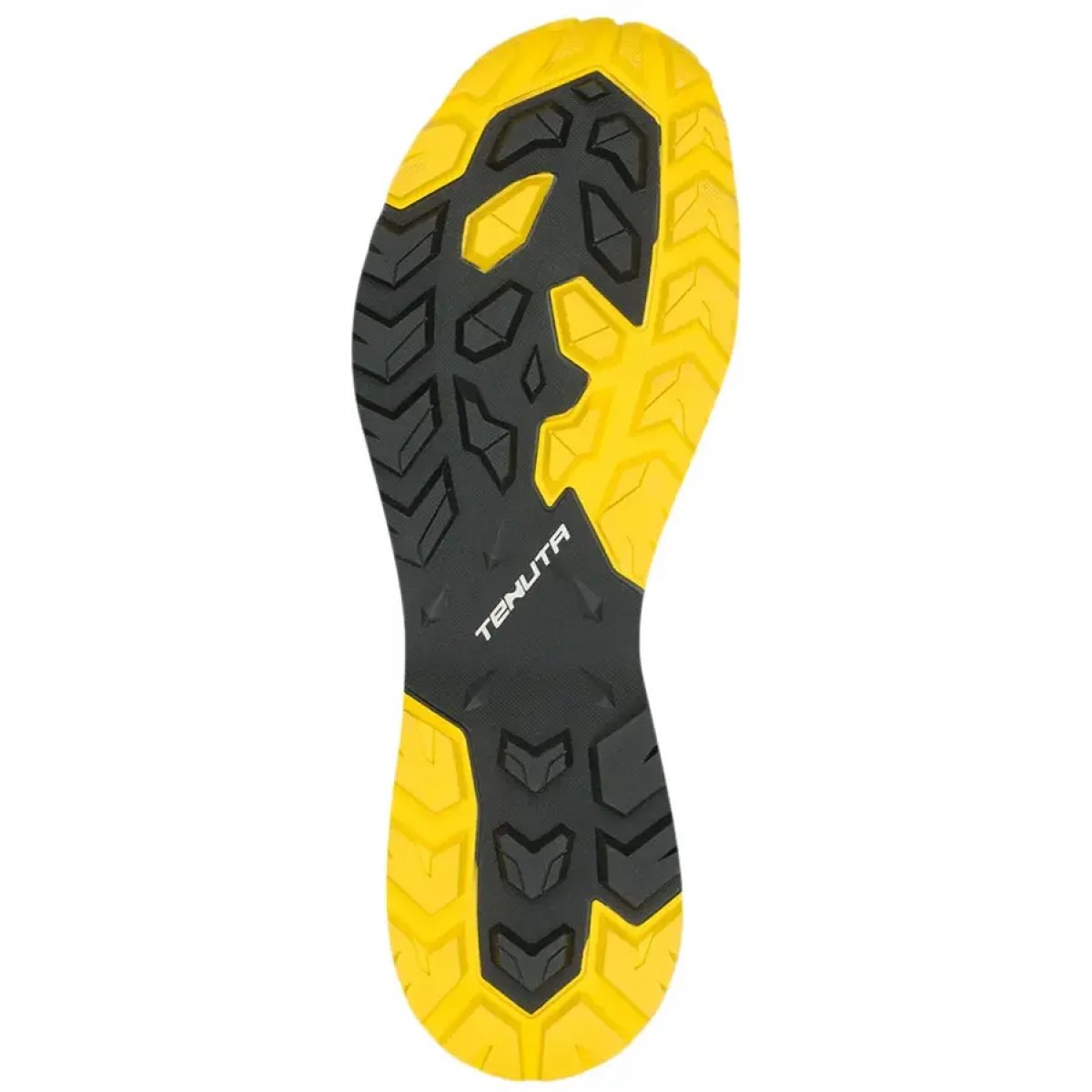 Двухслойная вставка в подошве из пены - EVA гарантирует баланс амортизации и стабильности, а подошва Tenuta Grip Reactive с фирменным рисунком протектора АКU создана для надежного сцепления на различных типах поверхности. Конструкция подошвы, разработанная по технологии AKU Elica Natural Stride System, способствует естественному перекату стопы и снижает усталость при длительной ходьбе. Стелька Ortholite Hybrid, частично изготовленная из переработанных материалов, добавляет комфорта и поддержки.