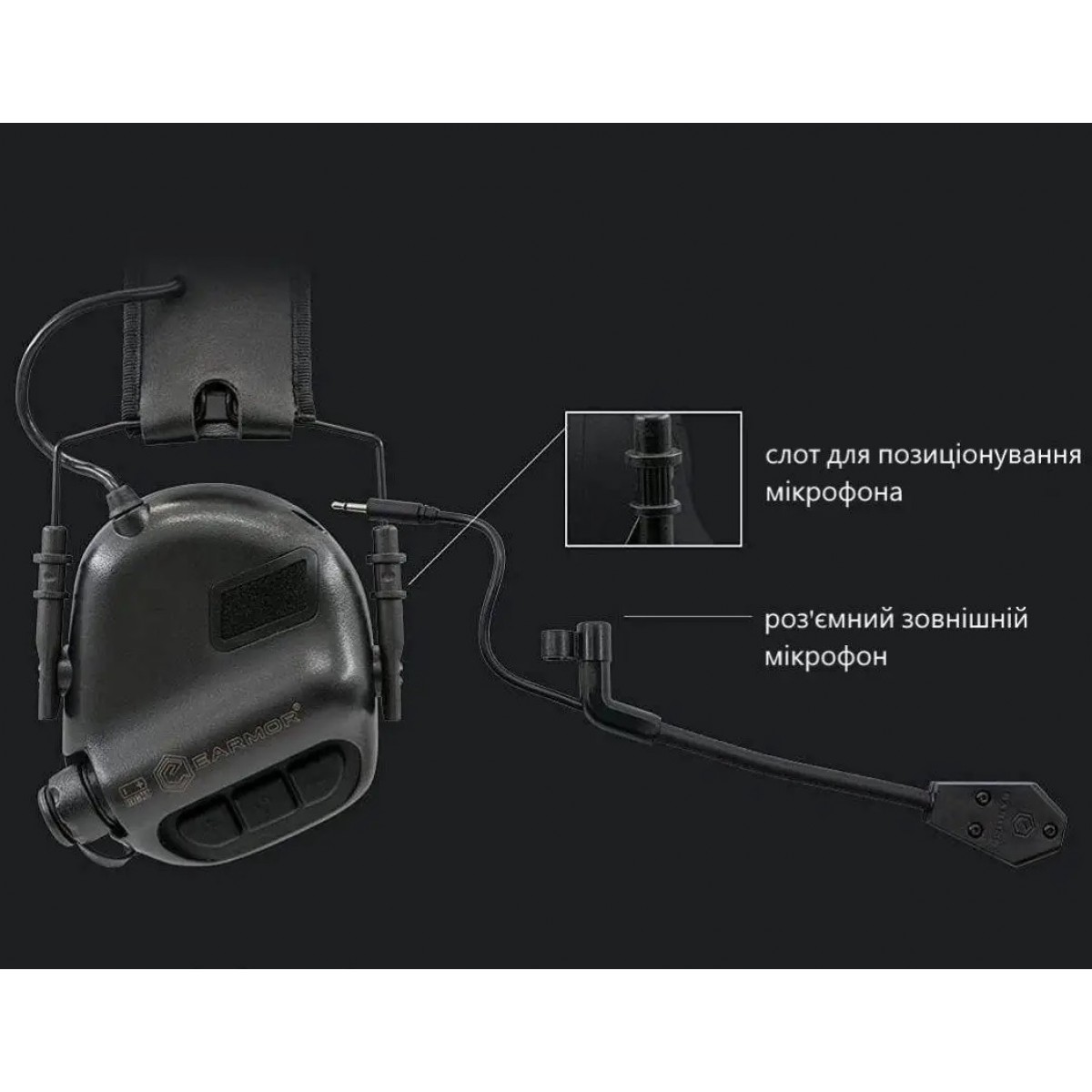 Опис Тактичні активні навушники з мікрофоном Earmor M32 MOD4 Олива