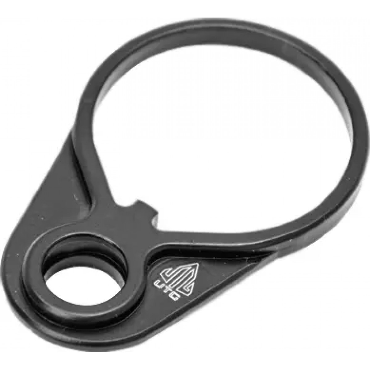 База для антабки QD Leapers для карабінів на платформі AR-15 використовується для можливості приєднання до зброї ременя, оснащеного швидкознімним кріпленням. Міцна конструкція виготовлена зі сталі з матовим покриттям. Встановлюється під гайку буферної труби (mil-spec) карабінів AR15. Підходить для будь-яких швидкознімних антабок діаметром 9,4 мм. Поворот QD-антабки вліво-вправо в цій базі обмежується кутом 90 градусів, щоб уникнути перекручування ременя.