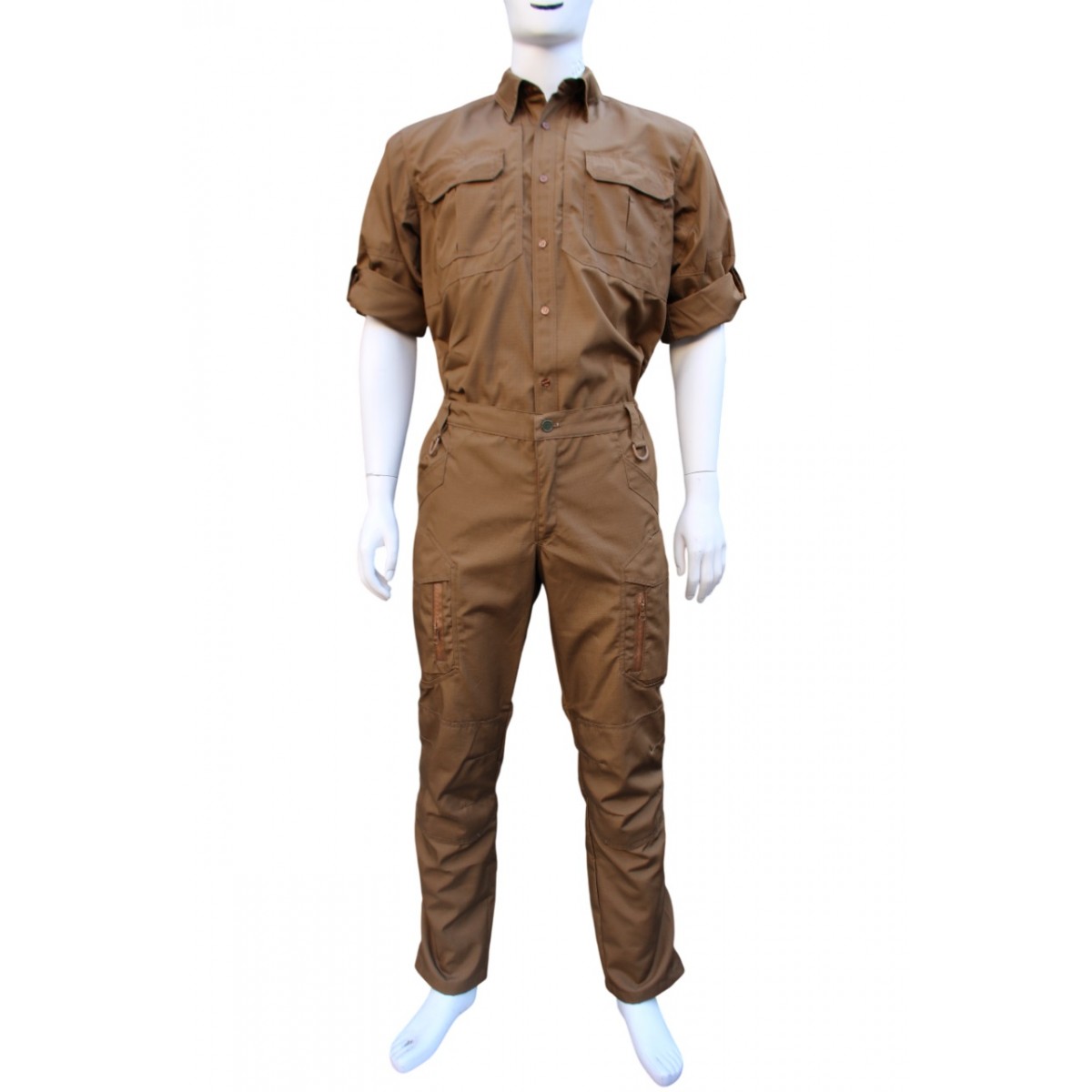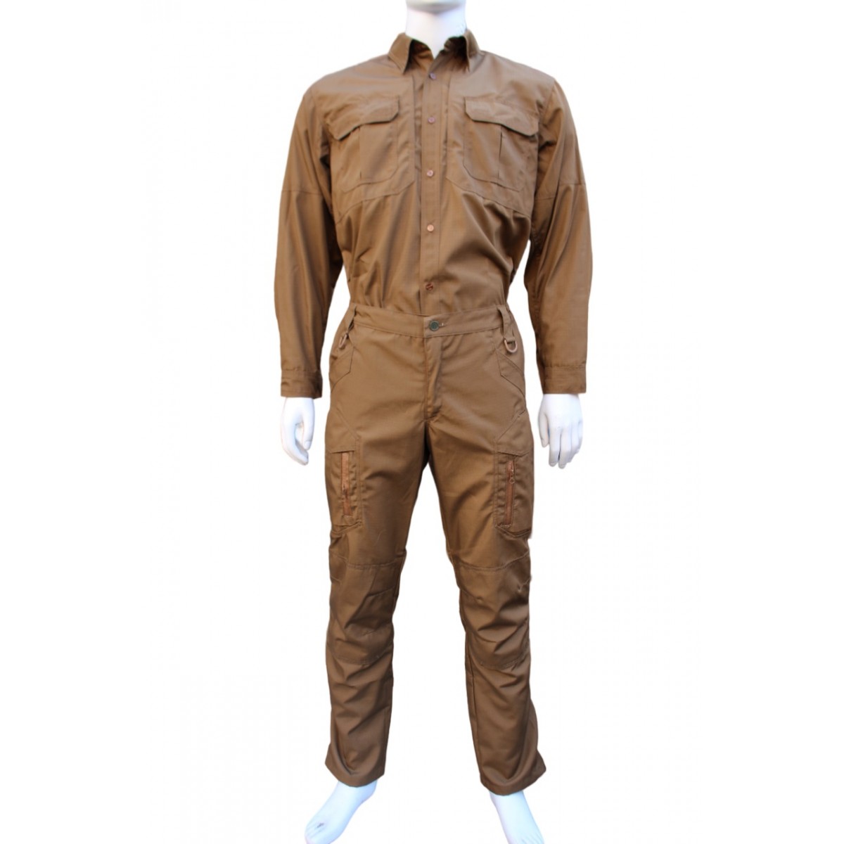 До комплекту входять сорочка та штани вільного крою, які не сковують рухи та забезпечують комфорт протягом усього дня. Універсальний колір койот браун підходить як для міських умов, так і для завдань на місцевості. Тканина добре пропускає повітря, а щільне плетіння rip-stop підвищує стійкість до стирання.