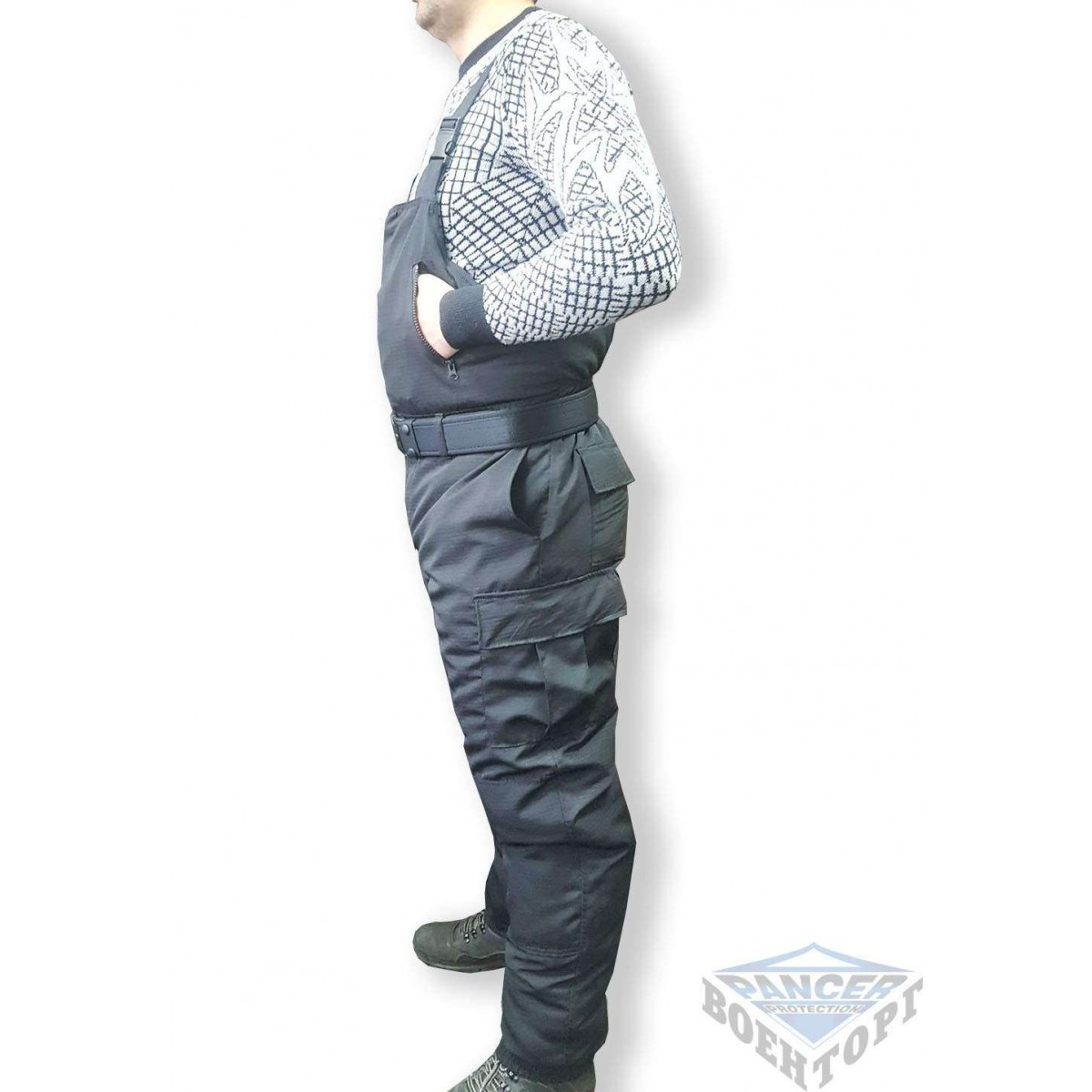Зимовий військовий комбінезон представленої моделі являє собою ідеальний варіант одягу на холодну пору року. Його основна перевага в тому, що він захищає не тільки ноги, але і життєво важливі органи, розташовані в черевній порожнині. Верхня частина комбінезона створює додатковий утеплюючий шар.