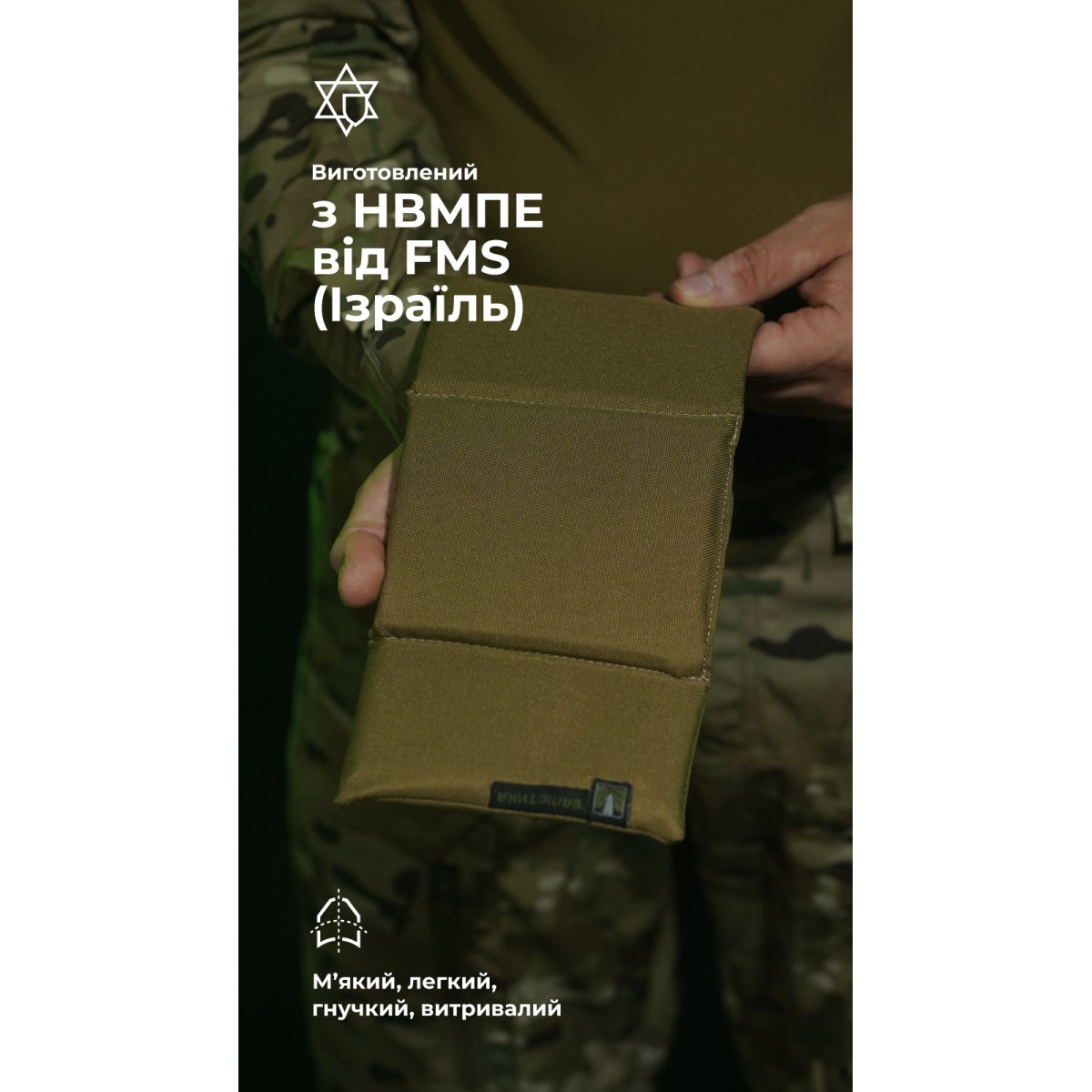 М’який бронезахист для підсумка захищає прилад нічного бачення або іншу цінну техніку. Вбереже вразливі компоненти передусім від уламків, а також від випадкових ударів, вібрацій, вибухової хвилі тощо. ✅ Ключові переваги Найвищі показники протиуламкової стійкості: бронепакет із 36 шарів НВМПЕ тримає уламки зі швидкістю 614,5 м/с (STANAG 2920 V50) Сировина світового рівня: НВМПЕ від FMS (Ізраїль) Зменшує заперешкодну травму: НВМПЕ від FMS має щільне перехресне накладення волокон, що зменшує вдавлення броні з внутрішнього боку Відповідає 1-му класу захисту за ДСТУ 8782:2018 Запаяний у герметичне пакування та поміщений у чохол із витривалої тканини Опис товару Наші бронепакети створено насамперед для захисту від уламків, які є найпоширенішою загрозою на фронті. Вироби мають найвищі показники протиуламкової стійкості та результати за показником V50 (STANAG 2920, ДСТУ 8782:2018) у своєму класі. Надвисокомолекулярний поліетилен (НВМПЕ), з якого вони виготовлені, є легким, гнучким і водночас дуже міцним матеріалом. Зовнішній чохол виготовлений з міцної, зносостійкої тканини, яка і сама здатна захистити прилад від дрібних механічних пошкоджень. Складається з трьох секцій, у яких розміщені три окремі бронепакети. Усі вони відділені один від одного згинами, прошитими ниткою, що дозволяє надавати їм прямокутної форми й запобігати деформації. На кожній секції нашиті велкро-панелі, які кріпляться до м’яких стінок підсумка. Бронепакет стійкий до ураження кулями калібру 9×18 мм (9 mm Makarov), 9×19 мм (9 mm Luger, 9 мм Parabellum), 9×19 (мм), що відповідає 1-му класу захисту за ДСТУ 8782:2018. Під час випробувань витримує постріл з автоматичного пістолета Стєчкіна та пістолета Glock 17 кулею зі свинцевим осердям із відстані 10 м. Захищає від дрібних уламків (осколків) та вторинних уражальних елементів – фрагментів бетону, цегли, скла, дерева тощо. Має заперешкодну деформацію до 22 мм (у середньому 15 мм і менше). Цьому сприяє щільне плетіння волокон НВМПЕ. Це критично важливо для зменшення ризику контузій без пробиття. Ультразвукова герметизація гарантує, що бронепакет не втратить властивостей під впливом дощу, бруду чи прямих сонячних променів. Вивірена кількість шарів і природна гнучкість матеріалу сприяють тому, що бронепакет адаптується до форми тіла й не заважає у бою. ℹ️ Протокол відстрілу бронепакета 1-го класу захисту згідно з ДСТУ (STANAG V50 – 614,5 м/с) ℹ️ Протокол відстрілу бронепакета 1-го класу захисту згідно з ДСТУ (8782:2018 ) ❓ Часті запитання Чи має цей бронепакет термін придатності? Чи втрачає характеристики з часом при зберіганні в домашніх умовах (наприклад, не під сонцем і не під дощем)? Наші бронепакети герметично запаяні. Якщо герметичність не порушена, а умови зберігання не екстремальні, бронепакет зберігає свої властивості понад 10 років. Чи залишає бронепакет достатньо місця всередині підсумка? Так, він розроблений спеціально для сумісності з ПНБ і не «з’їдає» зайвий внутрішній простір. Як доглядати за бронепакетом? Бронепакет не потребує особливого догляду. Але варто час від часу перевіряти його цілісність і замінювати в разі потреби. Його слід зберігати у сухому, провітрюваному місці, уникати прямих сонячних променів та впливу агресивних речовин, щоб зберегти захисні властивості на тривалий час. Що робити, якщо одна із трьох секцій пошкоджена – викидати весь бронепакет? Рекоменд