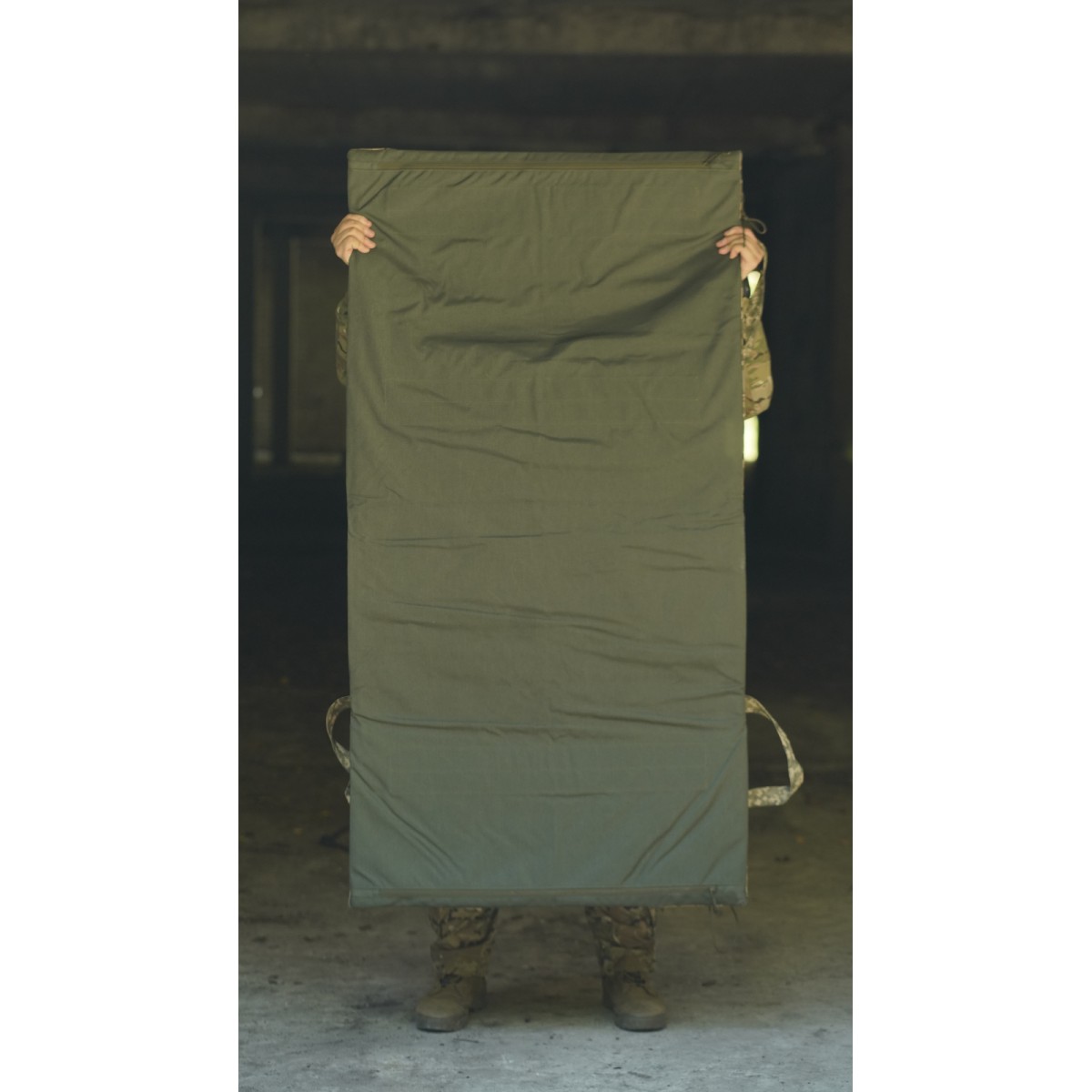 Бронековдра ефективно зупиняє уламки, які є найпоширенішою загрозою на передовій, в умовах коли немає можливості уникнути прямого контакту. ✅ Ключові переваги Бронепакет з НВМПЕ від FMS (Ізраїль) Має найвищі показники протиуламкової стійкості Відповідає 1-му класу захисту за ДСТУ 8782:2018 STANAG 2920 V-50 – 614,5 м/с Прикриття для особового складу, цінного майна Захист входу до бліндажа від уламків Стропи для підвішування на вході горизонтально чи вертикально Лямки для перенесення як рюкзак Площа захисту: 128 дм² Вага: 9,9 кг Витривалі матеріали – нейлон 1000D (аналог Cordura) – та фурнітура YKK (Японія), AMM (Україна) Опис товару Бронековдра незамінна в умовах інтенсивних обстрілів для захисту як особового складу, так і критично важливого обладнання. Завдяки великій площі забезпечує надійний захист від уламків снарядів, рикошетів, фрагментів каміння, бетону, скла тощо. У новій генерації бронековдра отримала покращені можливості для фіксації – додані стропи та паракорд уздовж верхнього й бічного країв. А всередині чохла з’явилося ще два ряди липучок, що гарантує ще надійніше кріплення бронепакета. Варіанти застосування Мобільний бар’єр для солдата на відкритій місцевості. Прикриття для спорядження, БК та техніки. Перекриття входів в укриттях. Додатковий захист для снайперів у зоні ураження мінометом або БПЛА. Конструкція Балістичний пакет виготовлений з НВМПЕ від FMS (Ізраїль). Відповідає 1-му класу за ДСТУ 8782:2018, має показник NATO STANAG 2920 V-50 – 614,5 м/c. Бронепакет вміщений у чохол з витривалої тканини – нейлон 1000D (аналог Cordura). Всередині міститься суцільний шар м’якого балістичного захисту, запаяного у герметичне пакування. Воно захищає його від вологи, бруду та ультрафіолету. Ковдра є достатньо гнучкою, тому може огортати об’єкт, а також складатися в кілька разів. У розгорнутому стані закриває собою майже всю площу тіла. На верхньому та бічному краях чохла нашиті стропи, крізь які протягнутий паракорд. За них бронековдру зручно підвішувати до цвяхів у колоді на вході в бліндаж. За потреби її можна встановити на довгу бортову сторону евакуаційного буса, чим забезпечити додатковий захист від уламків. Дві блискавки (70 см), вміщені зверху та знизу з внутрішньої сторони, надають доступ до бронепакета. Всередині бронепакет з обох сторін кріпиться загалом на 6 велкро-панелей (65×9,5 см), що зводить нанівець будь-який ризик його зміщення чи перекручення. Бронековдра складається вчетверо, після чого її краї можна закріпити двома фастексами. За допомогою широких міцних лямок (85×5 см) зі здвоєної стропи складену броню можна переносити як наплічник. Двощілинні пряжки дають змогу регулювати їхню довжину. Пара ручок із кожного боку полегшують транспортування бронековдри у складеному чи розкладеному стані кількома людьми. Крім захисних функцій, забезпечує маскування завдяки камуфляжному кольору. ℹ️ Протокол відстрілу бронепакета 1-го класу захисту згідно з ДСТУ (STANAG V50 – 614,5 м/с) ℹ️ Протокол відстрілу бронепакета 1-го класу захисту згідно з ДСТУ (8782:2018 ) ❓ Часті запитання Чи можна комбінувати декілька ковдр, щоб збільшити площу укриття? Так, можна. Паракорд можна вплести в стропи двох ковдр та створити єдину захисну поверхню. Чи поміститься бронековдра в баул? У баул може не поміститися. Однак це не проблема, адже бронековдра пристосована для самостійного перенесен