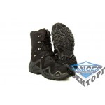 Прекрасні військові черевики для пересіченій місцевості середньої складності. Використовуються службами безпеки, правоохоронними органами та військовими. Ідеальні трекінгові черевики для туристів, альпіністів, рибалок, мисливців, і просто для цінителів високоякісного сучасного спортивного взуття для міської шкарпетки і подорожей. Черевики виготовлені з високоякісної 100% шкіри (замша) зі вставками з синтетичного матеріалу "Cordura". Всередині черевика мембрана "Gore-Tex", яка захищає ногу від вологи і відводить випари. Підошва забезпечує хорошу чіпкість практично на будь-якій поверхні.