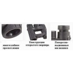 Waterproof - означає, що оптика герметизована ущільнювальним О-кільцем і захищена від проникнення вологи при занурення в рідину протягом 3 хвилин на глибину 1,5 метра. Статичний тиск рідини на глибині 1,5 метра не завдасть приладу ні найменшого збитку і не вплине на його функціональність. Такий оптиці ніякі погодні умови не страшні.