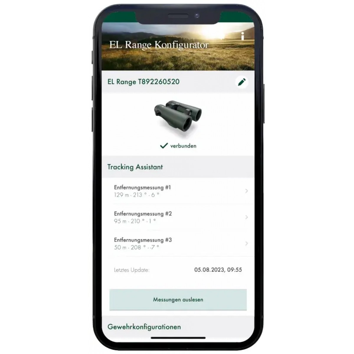 Оптимальним варіантом для мисливського спорядження є біноклі з вбудованим далекоміром Swarowski EL Range. Ці прилади поєднують в собі ідеальну чіткість висококласної оптики і бездоганну точність вимірювань. Завдяки високому коефіцієнту світлопередачі, малій вазі і максимально широкому куту поля зору Swarowski EL Range є лідером в своєму класі. Коефіцієнт світлопередачі окулярів становить 90%, а велике віддалення вихідної зіниці дозволяє без проблем користуватися приладом навіть людям в окулярах. Наочники мають індивідуальне регулювання та при висуванні мають чотири положення фіксації.