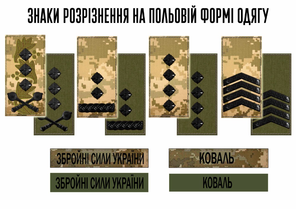Ці знаки дозволяють швидко визначити ранг солдатів та сержантів у польових умовах і забезпечують чітку ідентифікацію на полі бою.