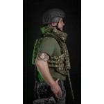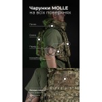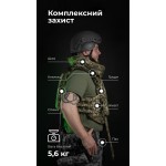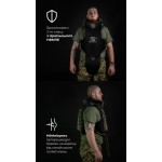 Бронежилет «Сармат» оснащений м’якими бронепакетами 2-го класу захисту згідно з ДСТУ 8782:2018. Вони виготовлені з якісного ізраїльського НВМПЕ, який вирізняється малою вагою та ефективно зупиняє уламки. М’який бронезахист у нашому виробі покриває не лише груди та спину, а й шию, ключиці, живіт і пах. Рухомий фартух та від’єднуваний комір дозволяють налаштувати бронежилет відповідно до завдання та суттєво збільшують площу захисту. Ключові переваги бронежилета Високий рівень захисту одразу Бронежилет комплектується балістичними пакетами 2-го класу з НВМПЕ від FMS. Завдяки цьому значно зменшується ризик пробиття та мінімізуються заперешкодні травми. Крім того, наші бронепакети мають найвищі показники протиуламкової стійкості серед інших виробників. Велика площа захисту – 49,28 дм2 У конструкції передбачено розширене покриття життєво важливих зон – шиї, ключиць, живота та паху – вже в базовій комплектації. Оновлений модуль захисту шиї Порівняно з попередньою версією нова забезпечує кращий комфорт. Розріз на задній частині розходиться під тиском шолома, що сприяє вільному руху голови. Водночас шолом менше зсувається вперед і не наїжджає на лоб і очі. Краї розрізу накладаються один на одного, тож у звичайному положенні між ними немає щілини, у яку може влучити уламок. Крім того, зсередини бортики обшиті м’яким велкро і не натирають шкіру. Система екстреного скидання Система дозволяє за секунду розділити бронежилет на передню і задню частини. Механізм складається зі сталевих тросів, протягнутих крізь жолобки по периметру передньої кишені під плиту. Він активується двома прихованими хлястиками. Також передбачена можливість скидання на один чи другий бік. Матеріали, розраховані на максимальну витривалість У виробництві використані міцні зносостійкі матеріали – нейлон 1000D (аналог Cordura), гіполон, 3D-сітка — та перевірена фурнітура (AMM), які витримують інтенсивну експлуатацію в умовах бойових дій. Це гарантує довговічність, надійність, стійкість до вологи, пилу та механічних впливів. Особливості товару Балістичний захист Бронежилет оснащений м’яким бронезахистом 2-го класу захисту загальною площею 49,28 дм2 та вагою 5,6 кг (без бронеплит). Матеріал для бронепакетів – надвисокомолекулярний поліетилен (НВМПЕ) – виробляється ізраїльською компанією FMS. Показник їхньої протиуламкової стійкості (V-50) становить 758,6 м/с. Витримують постріл 9×18 мм (9 mm Makarov), 9×19 мм (9 mm Luger, 9 mm Parabellum) із пістолетів та карабінів у пістолетному патроні та 7,62×25 мм (7,62×25 Tokarev). Протокол відстрілу 2-й клас захисту згідно з ДСТУ (STANAG V-50 – 758,6 м/с). Протокол відстрілу «Сармат» 2-й клас згідно з ДСТУ. Бронеплити Окрім відсіків для м’яких бронепакетів, «Сармат» оснащений фронтальною та тильною кишенями для бронеплит. Вони розраховані на комплектацію стандартними пластинами розміром 25×30 см зі скошеними верхніми кутами товщиною до 3 см. Також сумісні з пластинами SAPI M та ESAPI M. Бронежилет сумісний з усіма бронеплитами розміром 25×30, які можна придбати в магазинах «Балістика»: Анатомічна поліетиленова бронеплита з демпфером (3 клас захисту | 1.6 кг | 25х30 см | НВМПЕ). Бронепластина 6-го класу захисту керамічна. Матеріали Бронежилет виготовлений з міцного, зносостійкого нейлону, що здатен витримувати значні навантаження впродовж тривалого часу. Вся внутрішня частина вистелена 3D-сіткою, 