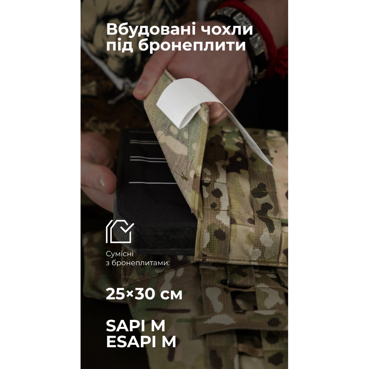 Опис Бронежилет "Сармат" (S-L | 2 клас захисту | під бронеплити 25х30 см | Мультикам) ТМ Балістика