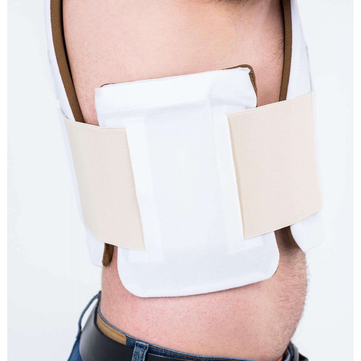 - Підгонка бронежилета забезпечується з допомогою чотирьох еластичних лямок які можуть бути зафіксовані у будь-якій частині жилета;