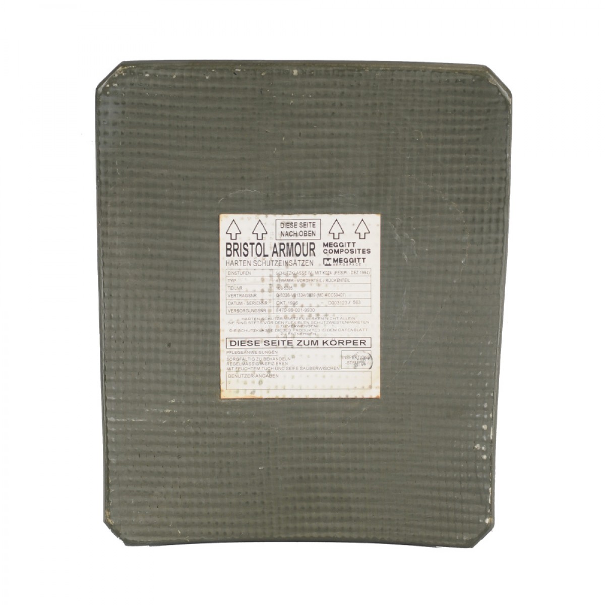 Бронеплита Bristol Armour з німецьким класом захисту IV який ефективний до калібру.308 Winchester VMS/HK (швидкість кулі від 830 м/с і вага до 9,75 грам) від Британського виробника Meggitt Armor System. У зв'язку з участю підрозділів Бундесверу в операції UNOSOM II (березень 1993 - березень 1995 року), було прийнято рішення про закупівлю бронежилетів "Bristol" Британського виробника Meggitt Armor Systems. Габарити плити: 30 х 25 см Класи захисту DIN (Німеччина): Клас Калібр Тип патрона Тип кулі Маса (г) Швидкість (м/с) L 9 мм Parabellum VMR\WK 8.00 365+/-5 I 9 мм Parabellum VMR\WK 8.00 410 +/- 10 II.357 Magnum MsF 7.50 570 +/- 20 III.223.308 Remington Winchester WK + P VMS/WK 4.00 9.55 920 +/- 10 830 +/- 10 IV.308 Winchester VMS/HK 9.75 820 +/- 10