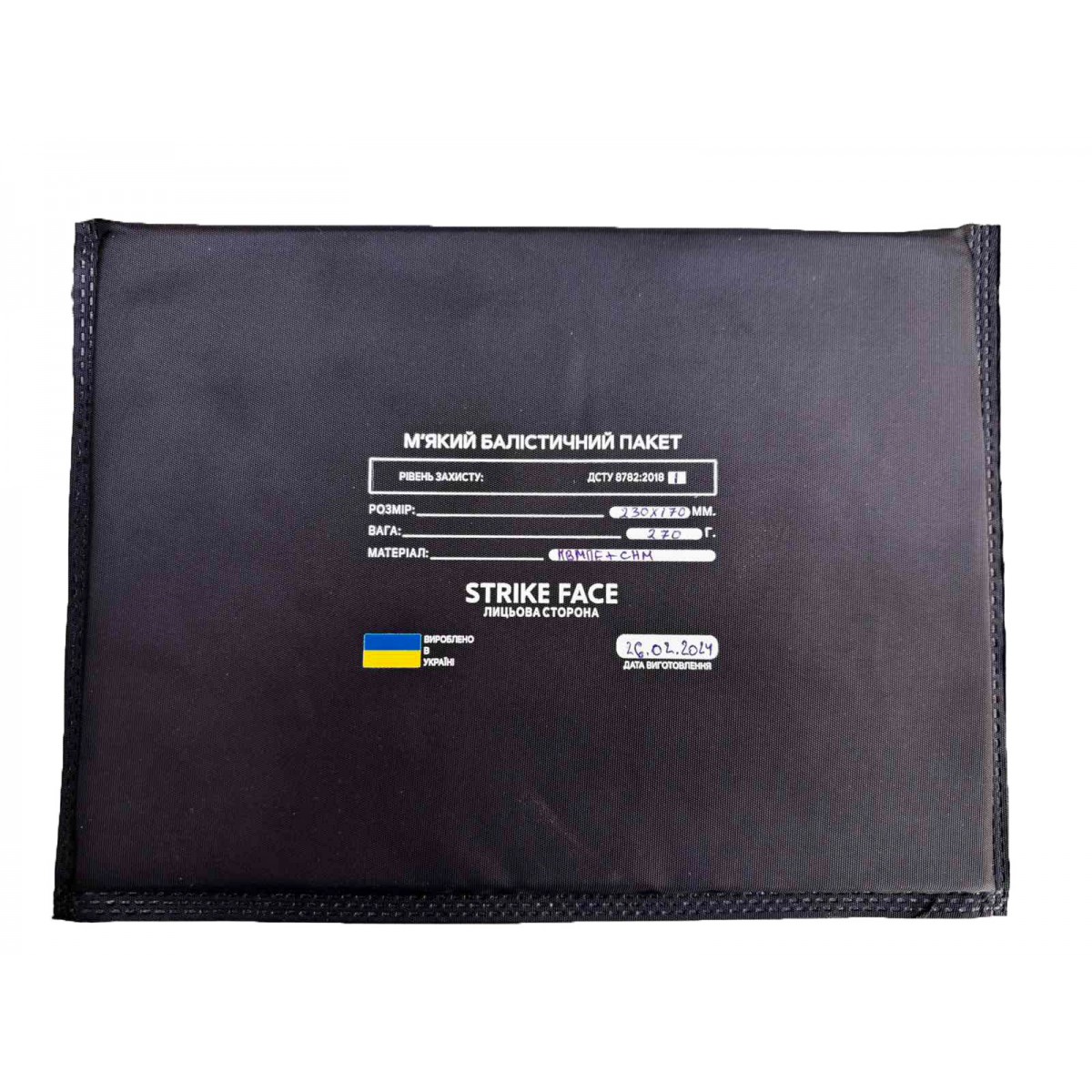 Основні характеристики Легкий м'який бронепакет з НВМПЕ (захист кишківника) 230*170 1-й клас захисту AL вага 270г