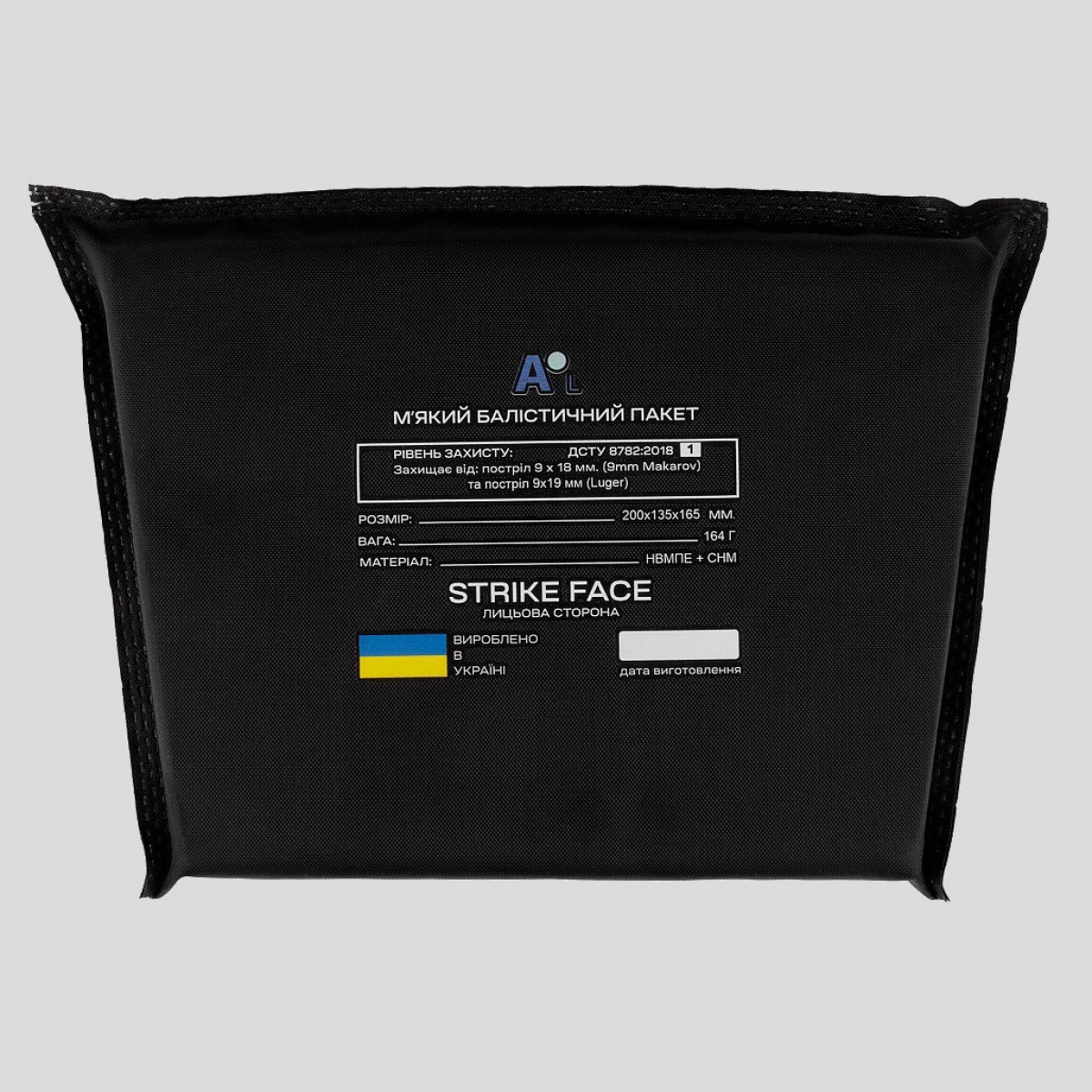 Основні характеристики Легкий м'який бронепакет в напашник 180*130*120 1-й клас захисту AL