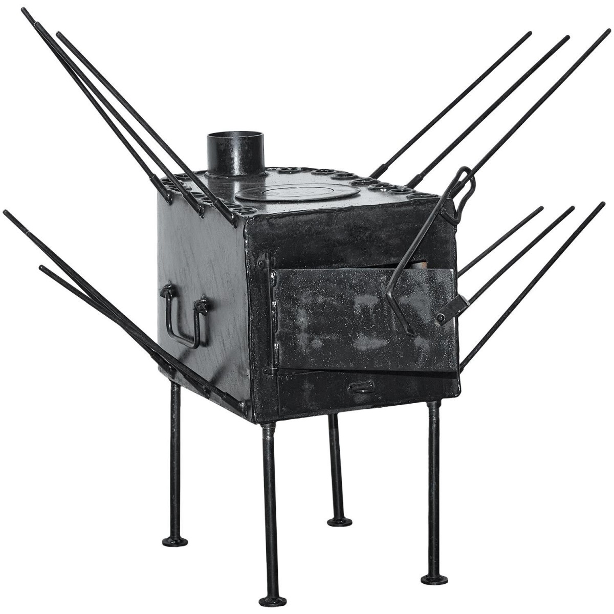 Крім того, буржуйка оснащена сушаркою для взуття та одягу. Конструкція дозволяє ефективно обігрівати приміщення площею до 40 кв.