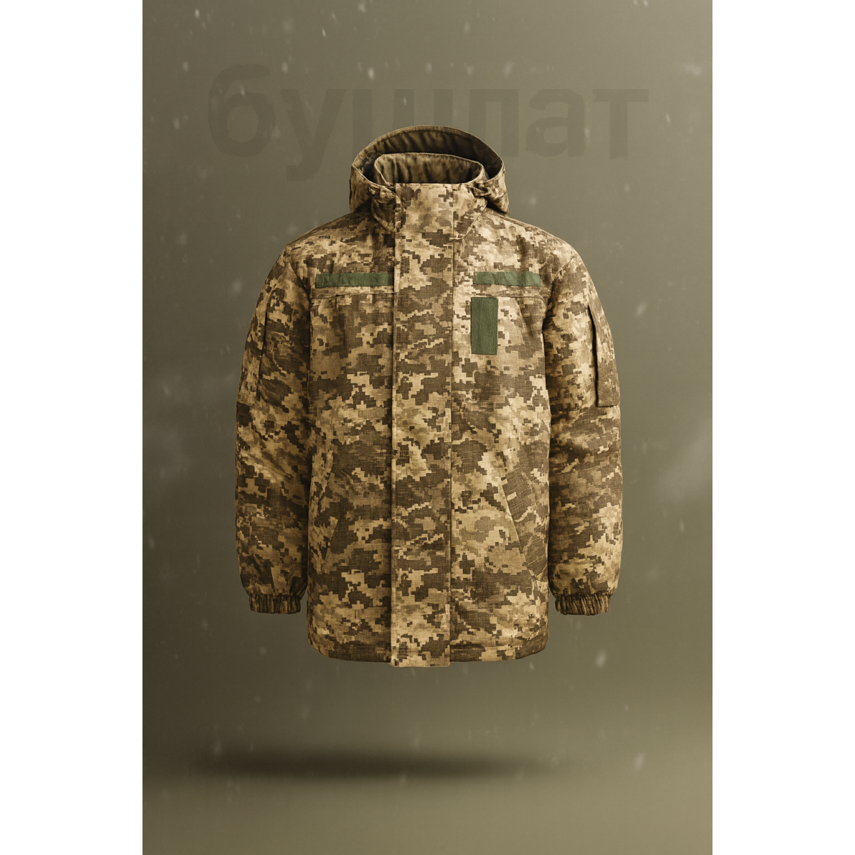- Додатково: утеплений капюшон, липучки Velcro для шевронів, застібка-блискавка з клапаном