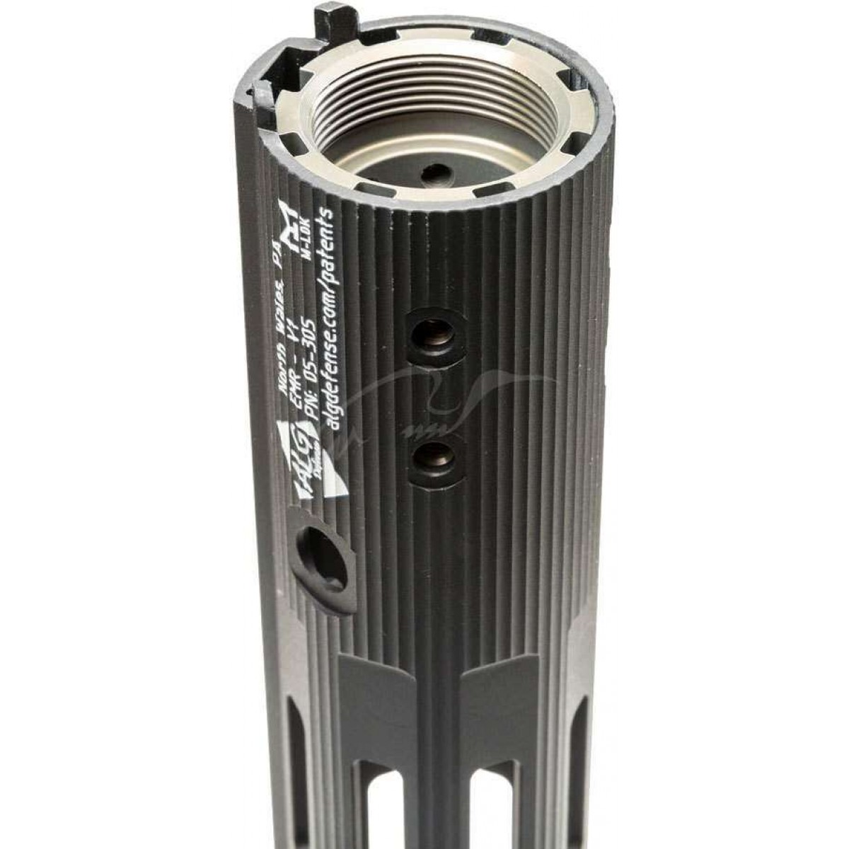ALG Defense EMR (Ergonomic Modular Rail) - консольні цівки для карабінів на базі AR-15. Всі вироби відфрезеровані з легкого і міцного авіаційного алюмінію марки 6061-Т6. Сполучна муфта ствола з алюмінію марки 7071-Т6 (в комплекті), збільшена в порівнянні зі стандартною для досягнення безкомпромісної надійності кріплення цівки до верхнього ресивера. Ключ для монтажу також поставляється в комплекті.Всі цівки серії - циліндричної форми, на поверхні выфрезерованы поздовжні насічки, що запобігають ковзання рук стрільця і підвищують контроль над зброєю під час стрільби. Отвори в корпусі значно полегшують конструкцію і максимізують тепловідвід від стовбура зброї. На корпусі передбачені посадочні місця для монтажу планок Picatinny/Weaver на 3, 6 і 9 годин і отвір для установки QD антабки без можливості обертання.