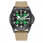 Годинник виготовлений з нержавіючої сталі, що забезпечує міцність та довговічність. Круглий корпус чорного кольору підкреслює вишуканість, а поєднання шкіряного та нейлонового ремінця у кольорі хакі додає йому стильного акценту. Сапфірове скло гарантує відмінну видимість та захист від подряпин, а люмінесцентна підсвітка забезпечує зручність у темряві.