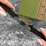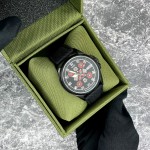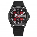 Корпус виготовлений з нержавіючої сталі червоного та чорного кольорів, що надає йому сучасного вигляду. Годинник оснащений сапфіровим склом, яке захищає циферблат з індексами. Ремінець, виконаний з комбінації шкіри та нейлону, забезпечує комфорт і зручність у носінні. Люмінесцентна підсвітка дозволяє без труднощів зчитувати час у темряві.