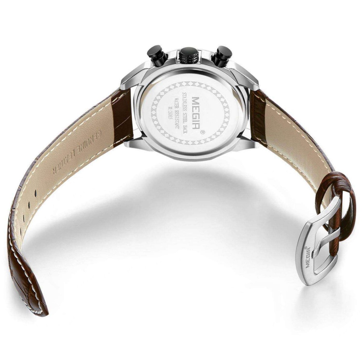 Megir – активно зростаючий годинний бренд, який взявся за власне виробництво годинників, викупивши старовинний, але розорився швейцарський бренд. До цього Megir виробляли якісні корпусу годинника для іменитих брендів. Всі моделі годин виконані в класичному стилі. Годинник випускаються як механічні, так і кварцові із застосуванням японських механізмів. На сьогоднішній день Megir заробляє собі ім'я, і це дає можливість споживачеві придбати справді висока якість за доступною ціною. З 1997 році бренд Megir належить Shenzhen-Meigeer Watch Company of Guangdong і є великим професійним виробником і експортером, який концентрується на дослідженнях, розробці, виробництві і продажу високоякісних годин, як механічних, так і кварцових. Кварцові механізми зазвичай від Seiko або Miyota що говорить про їх стабільної роботи.Відгуки про Годинник Megir Black Silver Brown MG2065