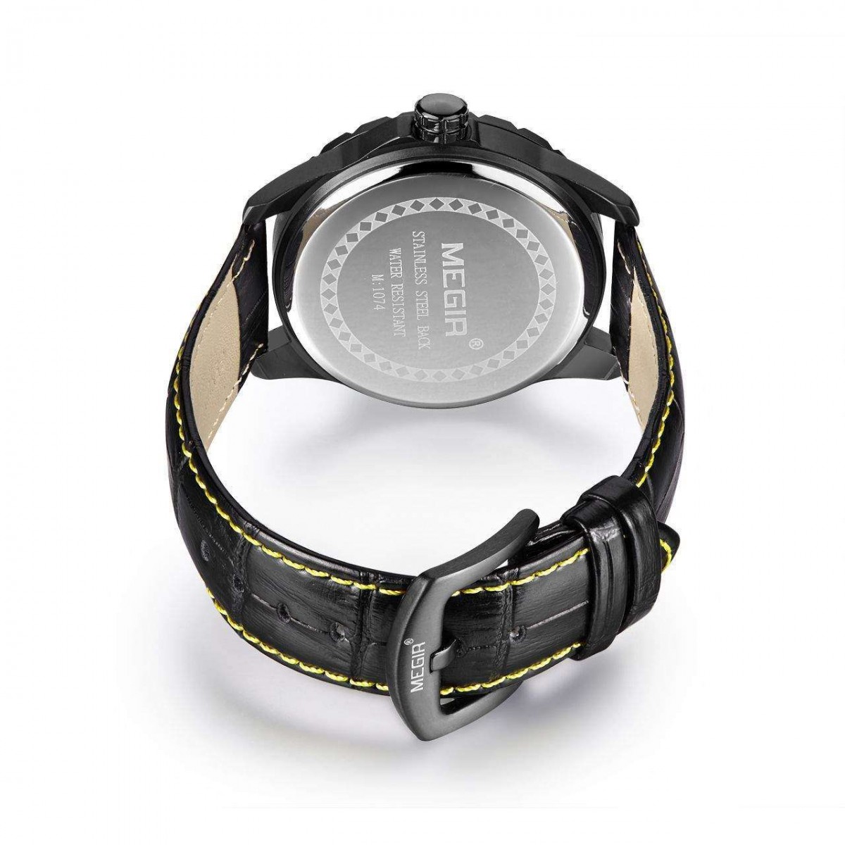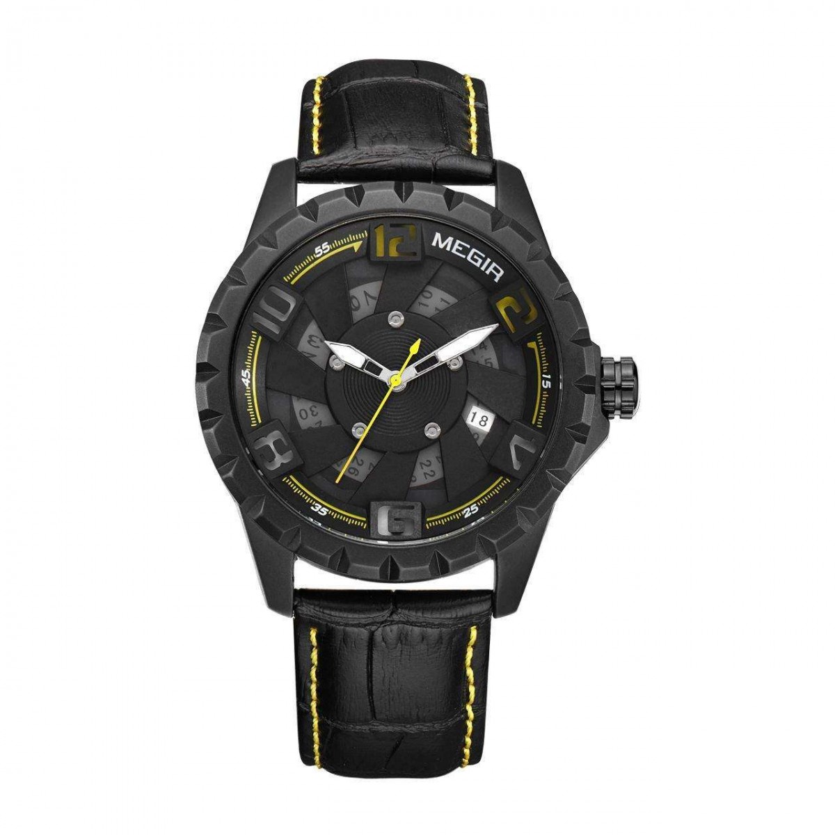 Megir – активно зростаючий годинний бренд, який взявся за власне виробництво годинників, викупивши старовинний, але розорився швейцарський бренд. До цього Megir виробляли якісні корпусу годинника для іменитих брендів. Всі моделі годин виконані в класичному стилі. Годинник випускаються як механічні, так і кварцові із застосуванням японських механізмів. На сьогоднішній день Megir заробляє собі ім'я, і це дає можливість споживачеві придбати справді висока якість за доступною ціною. З 1997 році бренд Megir належить Shenzhen-Meigeer Watch Company of Guangdong і є великим професійним виробником і експортером, який концентрується на дослідженнях, розробці, виробництві і продажу високоякісних годин, як механічних, так і кварцових. Кварцові механізми зазвичай від Seiko або Miyota що говорить про їх стабільної роботи.Відгуки про Годинник Megir Black Yellow MG1074