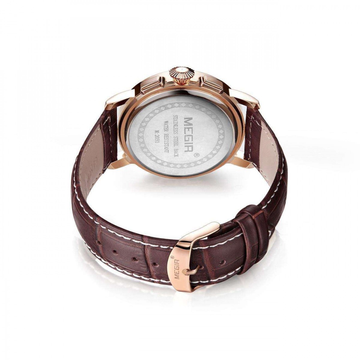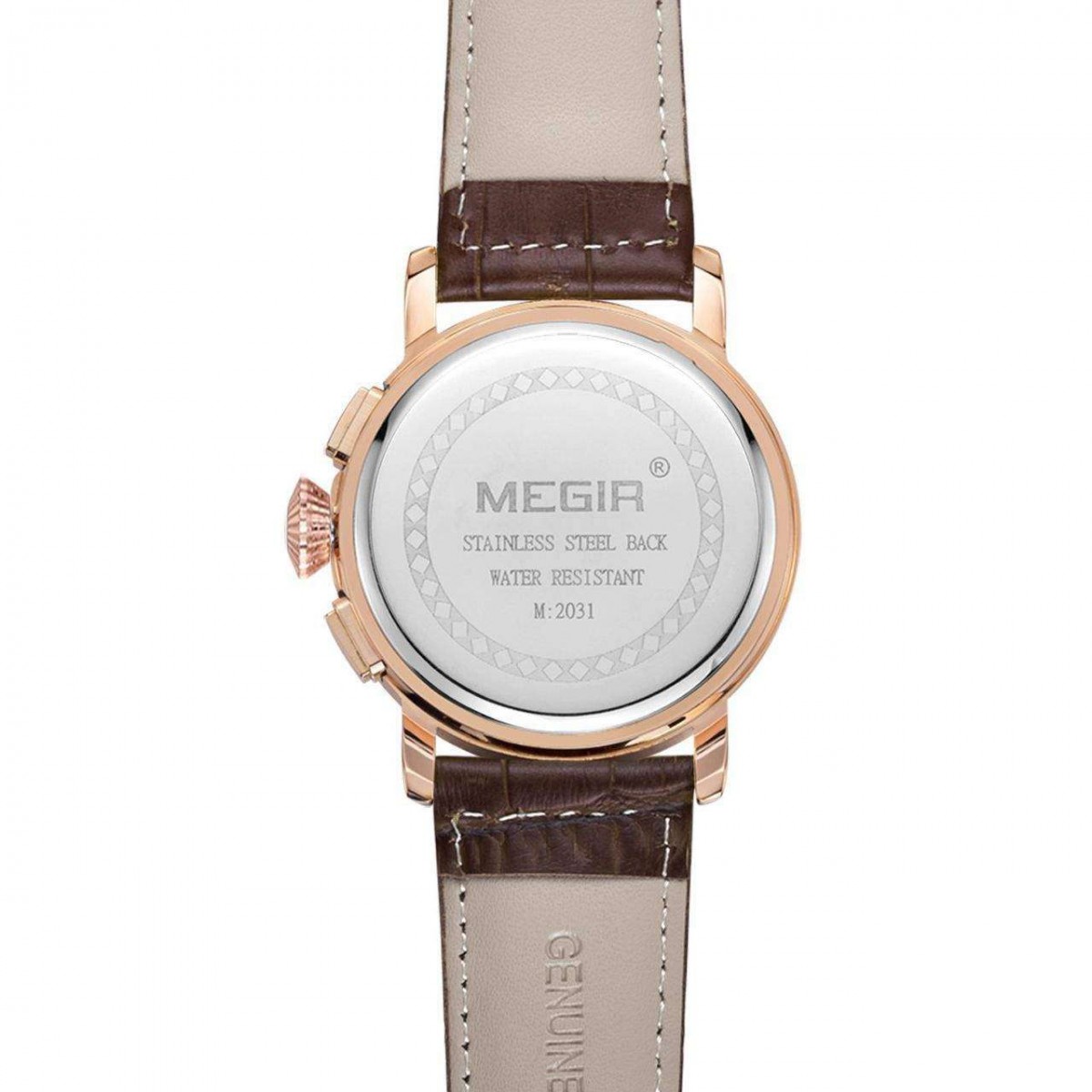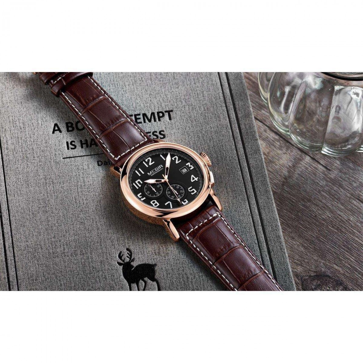 Megir – активно зростаючий годинний бренд, який взявся за власне виробництво годинників, викупивши старовинний, але розорився швейцарський бренд. До цього Megir виробляли якісні корпусу годинника для іменитих брендів. Всі моделі годин виконані в класичному стилі. Годинник випускаються як механічні, так і кварцові із застосуванням японських механізмів. На сьогоднішній день Megir заробляє собі ім'я, і це дає можливість споживачеві придбати справді висока якість за доступною ціною. З 1997 році бренд Megir належить Shenzhen-Meigeer Watch Company of Guangdong і є великим професійним виробником і експортером, який концентрується на дослідженнях, розробці, виробництві і продажу високоякісних годин, як механічних, так і кварцових. Кварцові механізми зазвичай від Seiko або Miyota що говорить про їх стабільної роботи.Відгуки про Годинник Megir Gold Black Brown MG2031