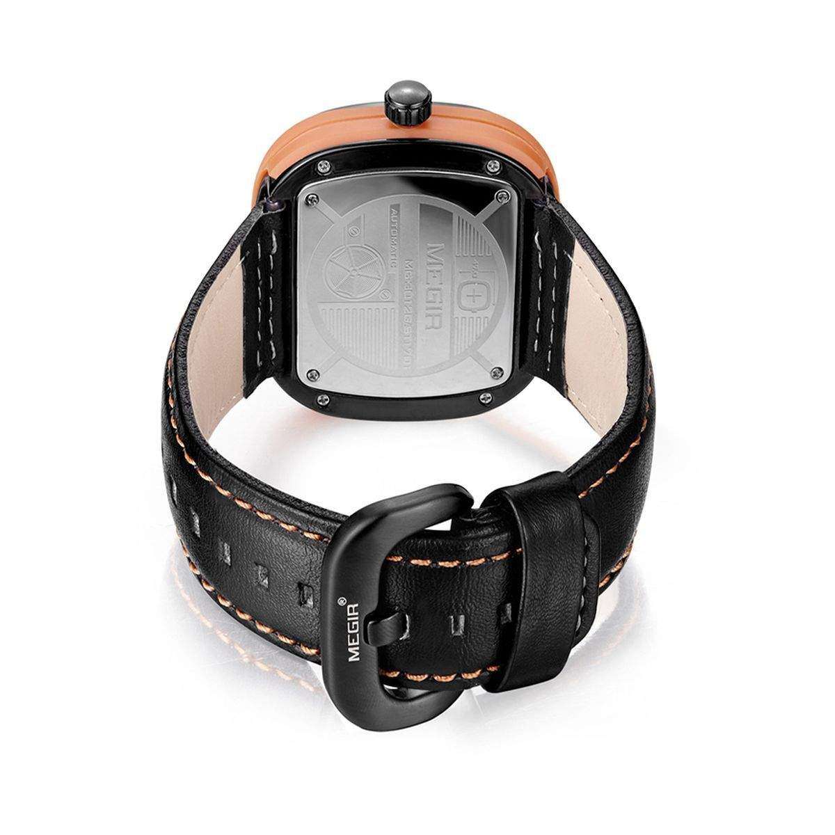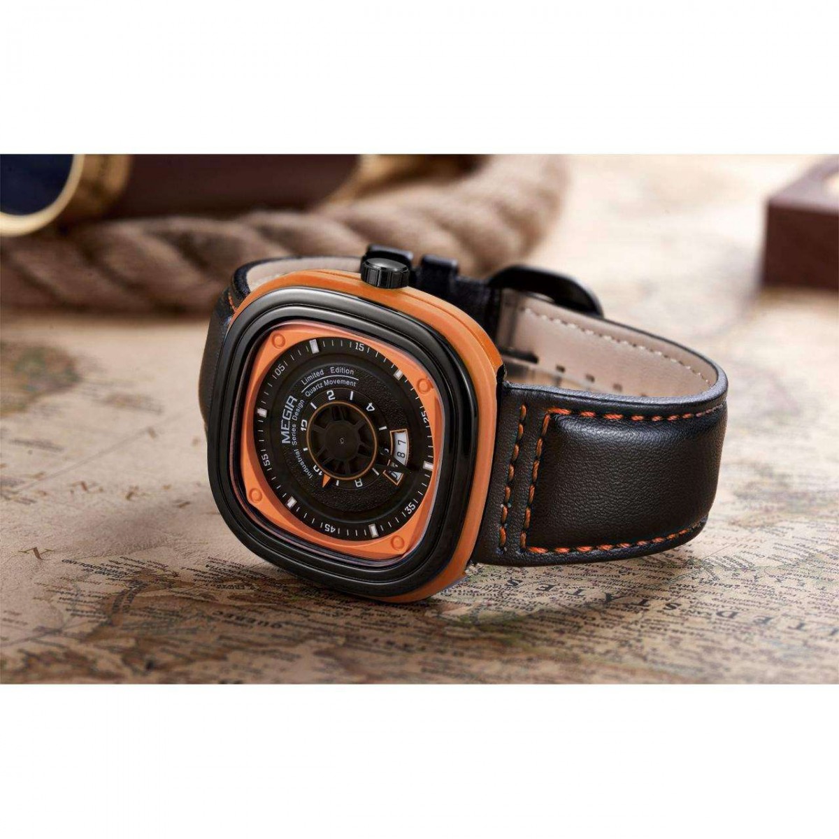 Megir – активно зростаючий годинний бренд, який взявся за власне виробництво годинників, викупивши старовинний, але розорився швейцарський бренд. До цього Megir виробляли якісні корпусу годинника для іменитих брендів. Всі моделі годин виконані в класичному стилі. Годинник випускаються як механічні, так і кварцові із застосуванням японських механізмів. На сьогоднішній день Megir заробляє собі ім'я, і це дає можливість споживачеві придбати справді висока якість за доступною ціною. З 1997 році бренд Megir належить Shenzhen-Meigeer Watch Company of Guangdong і є великим професійним виробником і експортером, який концентрується на дослідженнях, розробці, виробництві і продажу високоякісних годин, як механічних, так і кварцових. Кварцові механізми зазвичай від Seiko або Miyota що говорить про їх стабільної роботи.Відгуки про Годинник Megir Black Orange MG2027