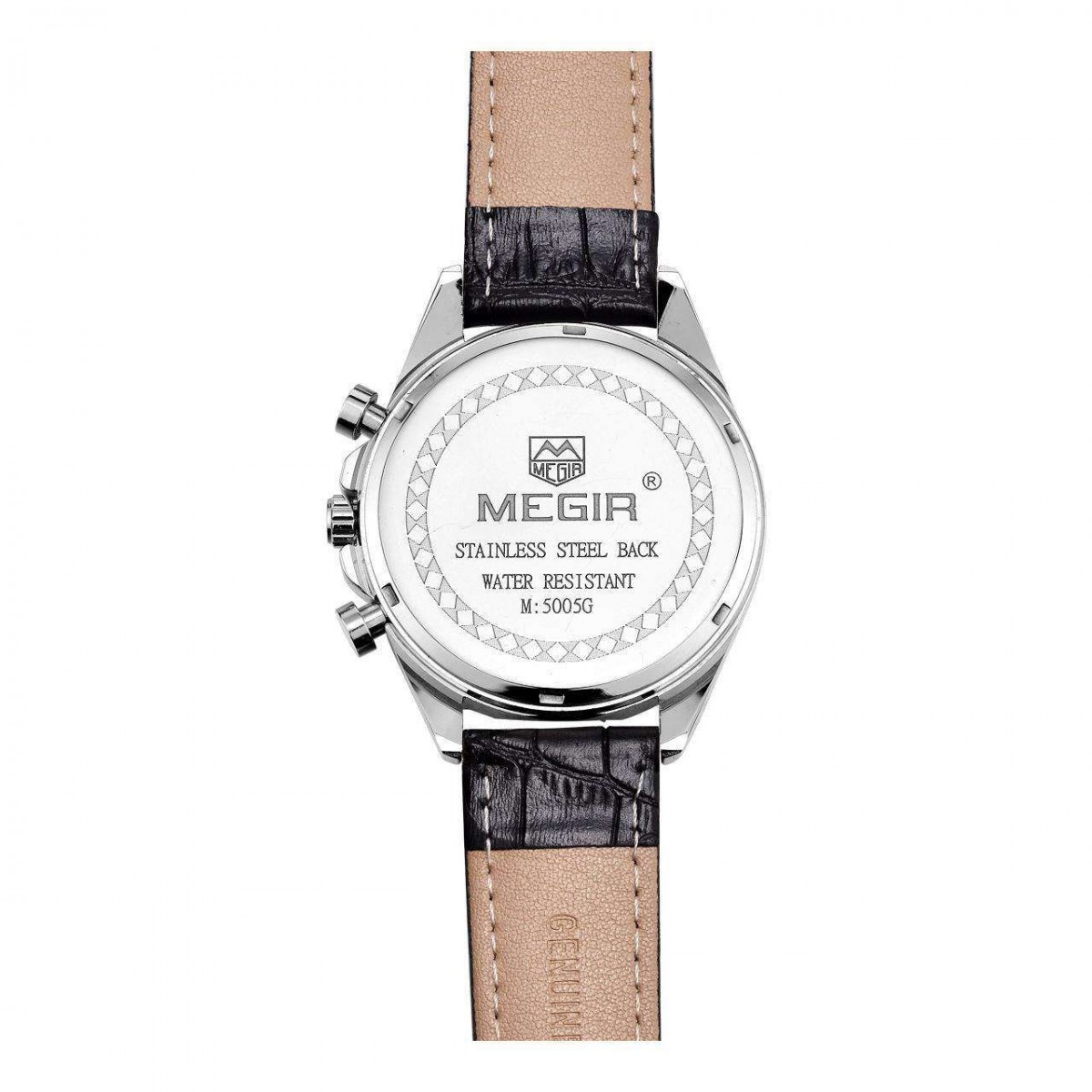 Megir – активно зростаючий годинний бренд, який взявся за власне виробництво годинників, викупивши старовинний, але розорився швейцарський бренд. До цього Megir виробляли якісні корпусу годинника для іменитих брендів. Всі моделі годин виконані в класичному стилі. Годинник випускаються як механічні, так і кварцові із застосуванням японських механізмів. На сьогоднішній день Megir заробляє собі ім'я, і це дає можливість споживачеві придбати справді висока якість за доступною ціною. З 1997 році бренд Megir належить Shenzhen-Meigeer Watch Company of Guangdong і є великим професійним виробником і експортером, який концентрується на дослідженнях, розробці, виробництві і продажу високоякісних годин, як механічних, так і кварцових. Кварцові механізми зазвичай від Seiko або Miyota що говорить про їх стабільної роботи.Відгуки про Годинник Megir Silver Black MG5005