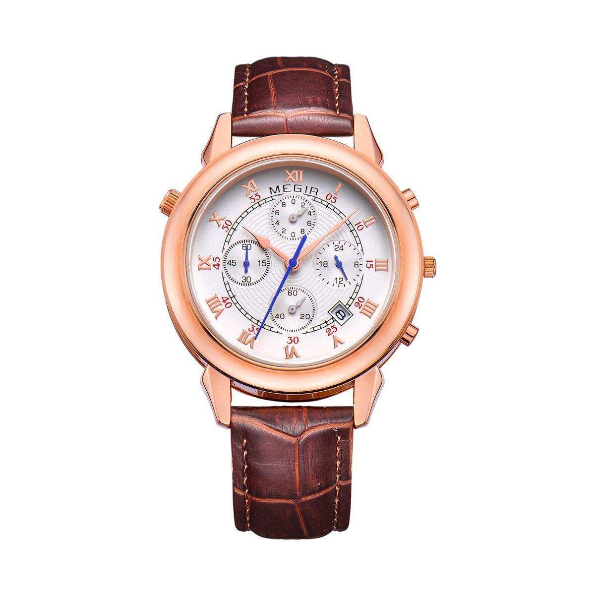 Megir – активно зростаючий годинний бренд, який взявся за власне виробництво годинників, викупивши старовинний, але розорився швейцарський бренд. До цього Megir виробляли якісні корпусу годинника для іменитих брендів. Всі моделі годин виконані в класичному стилі. Годинник випускаються як механічні, так і кварцові із застосуванням японських механізмів. На сьогоднішній день Megir заробляє собі ім'я, і це дає можливість споживачеві придбати справді висока якість за доступною ціною. З 1997 році бренд Megir належить Shenzhen-Meigeer Watch Company of Guangdong і є великим професійним виробником і експортером, який концентрується на дослідженнях, розробці, виробництві і продажу високоякісних годин, як механічних, так і кварцових. Кварцові механізми зазвичай від Seiko або Miyota що говорить про їх стабільної роботи.~ ~Megir – активно зростаючий годинний бренд, який взявся за власне виробництво годинників, викупивши старовинний, але розорився швейцарський бренд. До цього Megir виробляли якісні корпусу годинника для іменитих брендів. Всі моделі годин виконані в класичному стилі. Годинник випускаються як механічні, так і кварцові із застосуванням японських механізмів. На сьогоднішній день Megir заробляє собі ім'я, і це дає можливість споживачеві придбати справді висока якість за доступною ціною. З 1997 році бренд Megir належить Shenzhen-Meigeer Watch Company of Guangdong і є великим професійним виробником і експортером, який концентрується на дослідженнях, розробці, виробництві і продажу високоякісних годин, як механічних, так і кварцових. Кварцові механізми зазвичай від Seiko або Miyota що говорить про їх стабільної роботи.Відгуки про Годинник Megir Silver Brown MG2013