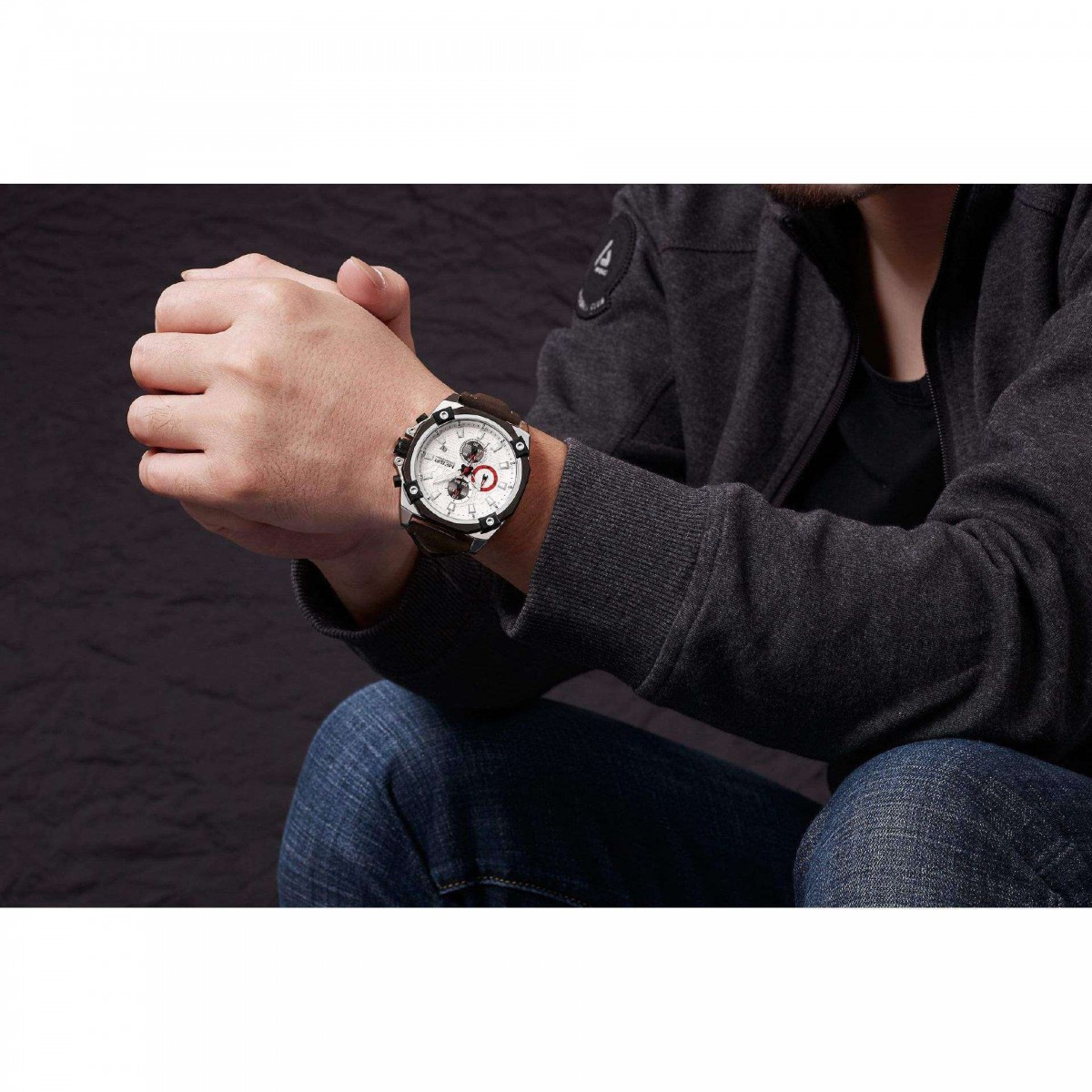 Megir – активно зростаючий годинний бренд, який взявся за власне виробництво годинників, викупивши старовинний, але розорився швейцарський бренд. До цього Megir виробляли якісні корпусу годинника для іменитих брендів. Всі моделі годин виконані в класичному стилі. Годинник випускаються як механічні, так і кварцові із застосуванням японських механізмів. На сьогоднішній день Megir заробляє собі ім'я, і це дає можливість споживачеві придбати справді висока якість за доступною ціною. З 1997 році бренд Megir належить Shenzhen-Meigeer Watch Company of Guangdong і є великим професійним виробником і експортером, який концентрується на дослідженнях, розробці, виробництві і продажу високоякісних годин, як механічних, так і кварцових. Кварцові механізми зазвичай від Seiko або Miyota що говорить про їх стабільної роботи.Відгуки про Годинник Megir Silver Brown MG2054