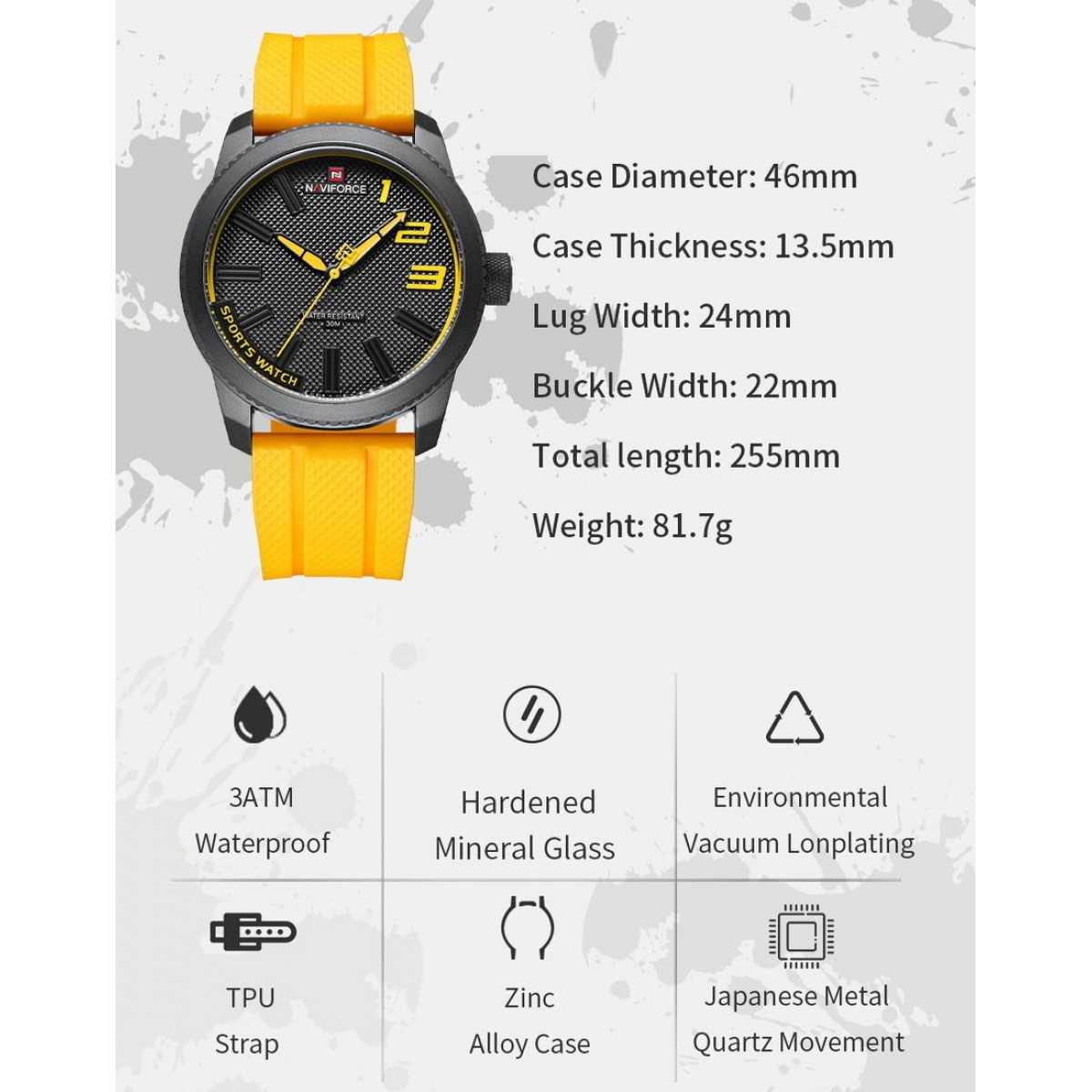 Особливу увагу бренд Naviforce приділяє захисту аксесуарів від негативних зовнішніх факторів. Годинник відрізняється стійкістю до механічних пошкоджень, впливу підвищеної вологості, снігу, дощу і т.д. Комплектується наручний годинник кварцовими оригінальними механізмами Citizen і Seiko і має офіційну гарантію 12 місяців.