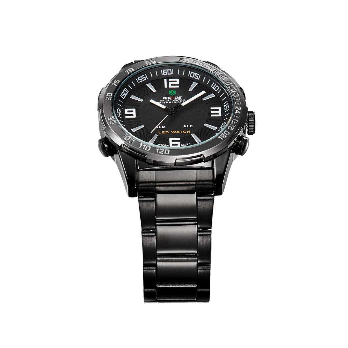 Наручний годинник WEIDE - стильний аксесуар, безумовно є невід'ємним атрибутом будь-якого сучасного чоловіка. Неймовірний брутальний дизайн, безліч функцій і незрівнянна практичність. Запорукою якості годинника є японський механізм Miyota в корпусі з нержавіючої сталі. Протиударні, водонепроникні моделі годин WEIDE володіють стійкістю до магнітного поля і є справжньою знахідкою для брутальних чоловіків, які віддають перевагу активний спосіб життя. Годинник WEIDE - збираються на трьох фабриках в Китаї і Японії з 2003року. З 2015 року Бренд займає лідируючі позиції з продажу в світі. Повна збірка і механізм виробляється в Японії. Кварцові годинники Weide здатні витримувати підвищені експлуатаційні навантаження, з легкістю витримають повсякденні будні і не залишать вас при заняттях спортом. Все завдяки бездоганній якості деталей і високому контролю якості в цілому. А головне, що такий необхідний аксесуар для чоловіка як годинник, від бренду WEIDE, доступний кожному.Відгуки про Годинник Weide All Black WH1009B-1C SS