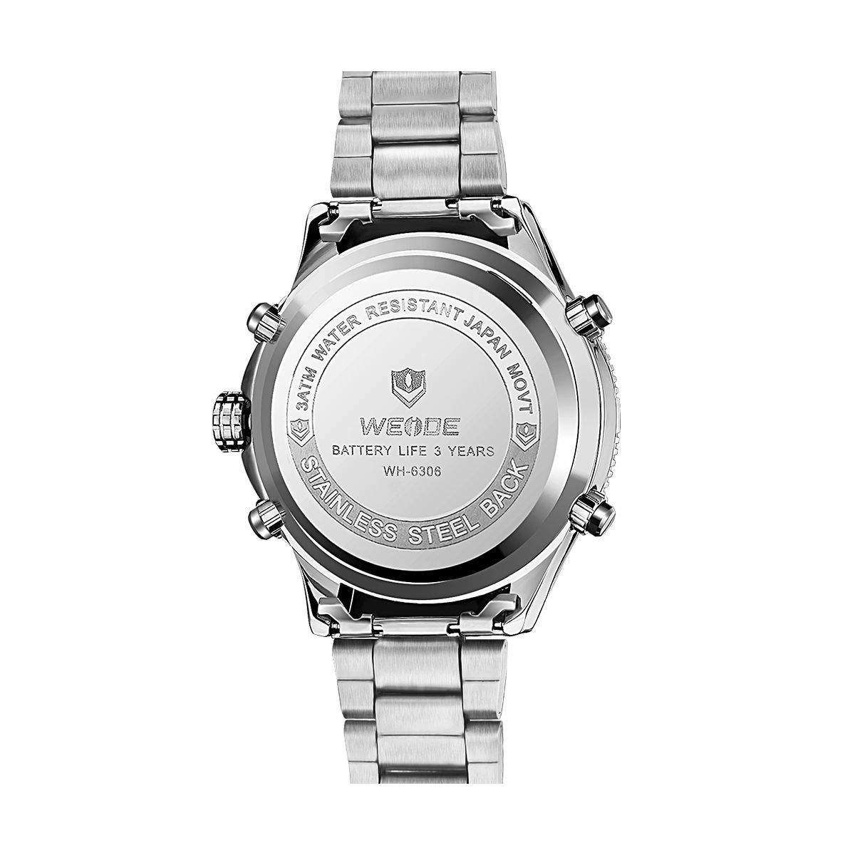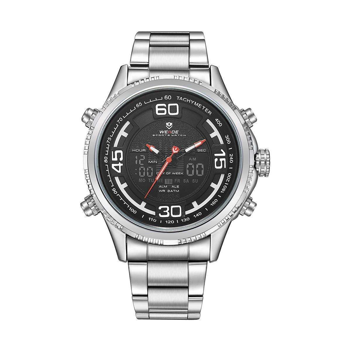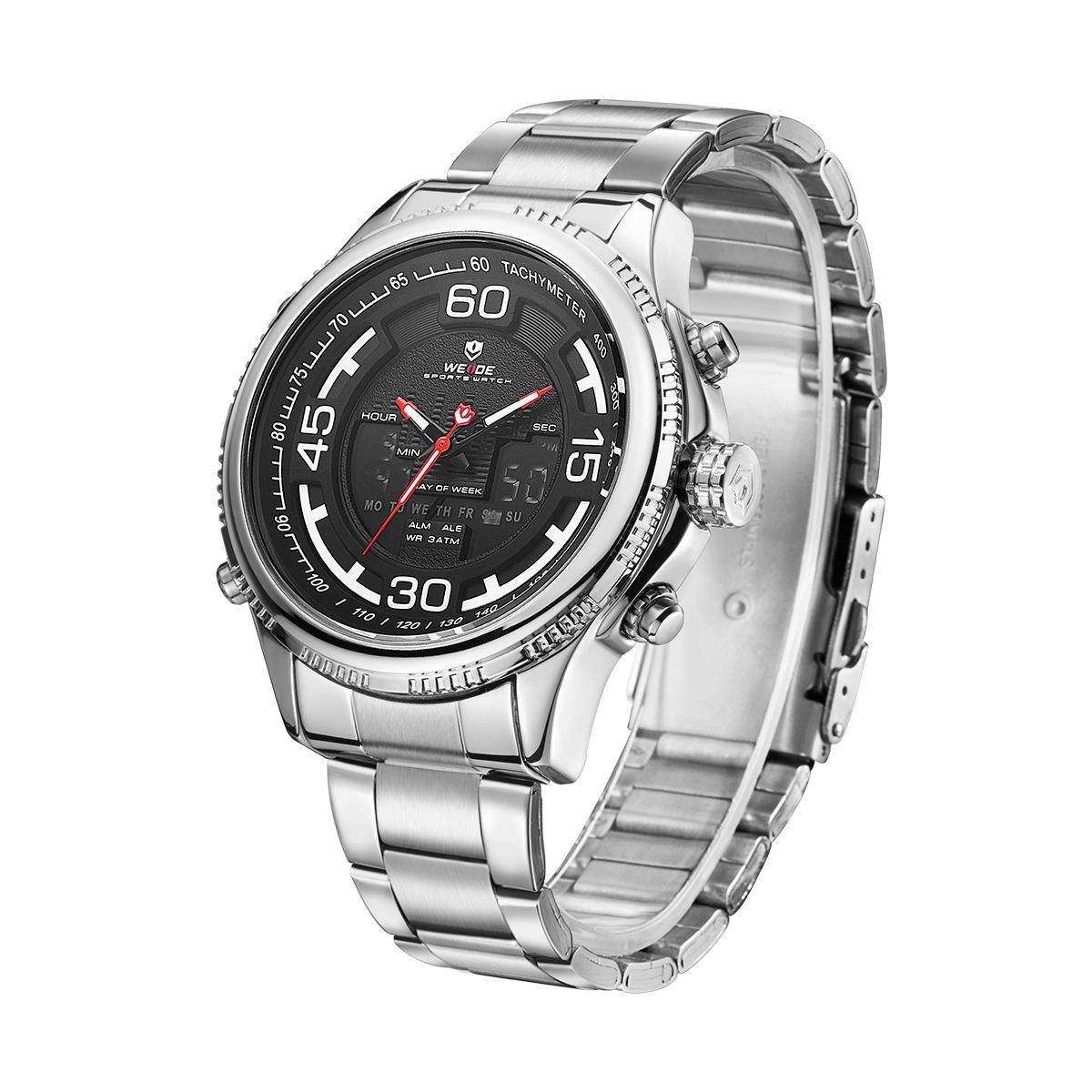 Наручний годинник WEIDE - стильний аксесуар, безумовно є невід'ємним атрибутом будь-якого сучасного чоловіка. Неймовірний брутальний дизайн, безліч функцій і незрівнянна практичність. Запорукою якості годинника є японський механізм Miyota в корпусі з нержавіючої сталі. Протиударні, водонепроникні моделі годин WEIDE володіють стійкістю до магнітного поля і є справжньою знахідкою для брутальних чоловіків, які віддають перевагу активний спосіб життя. Годинник WEIDE - збираються на трьох фабриках в Китаї і Японії з 2003року. З 2015 року Бренд займає лідируючі позиції з продажу в світі. Повна збірка і механізм виробляється в Японії. Кварцові годинники Weide здатні витримувати підвищені експлуатаційні навантаження, з легкістю витримають повсякденні будні і не залишать вас при заняттях спортом. Все завдяки бездоганній якості деталей і високому контролю якості в цілому. А головне, що такий необхідний аксесуар для чоловіка як годинник, від бренду WEIDE, доступний кожному.Відгуки про Годинник Weide Black WH6306-1C SS