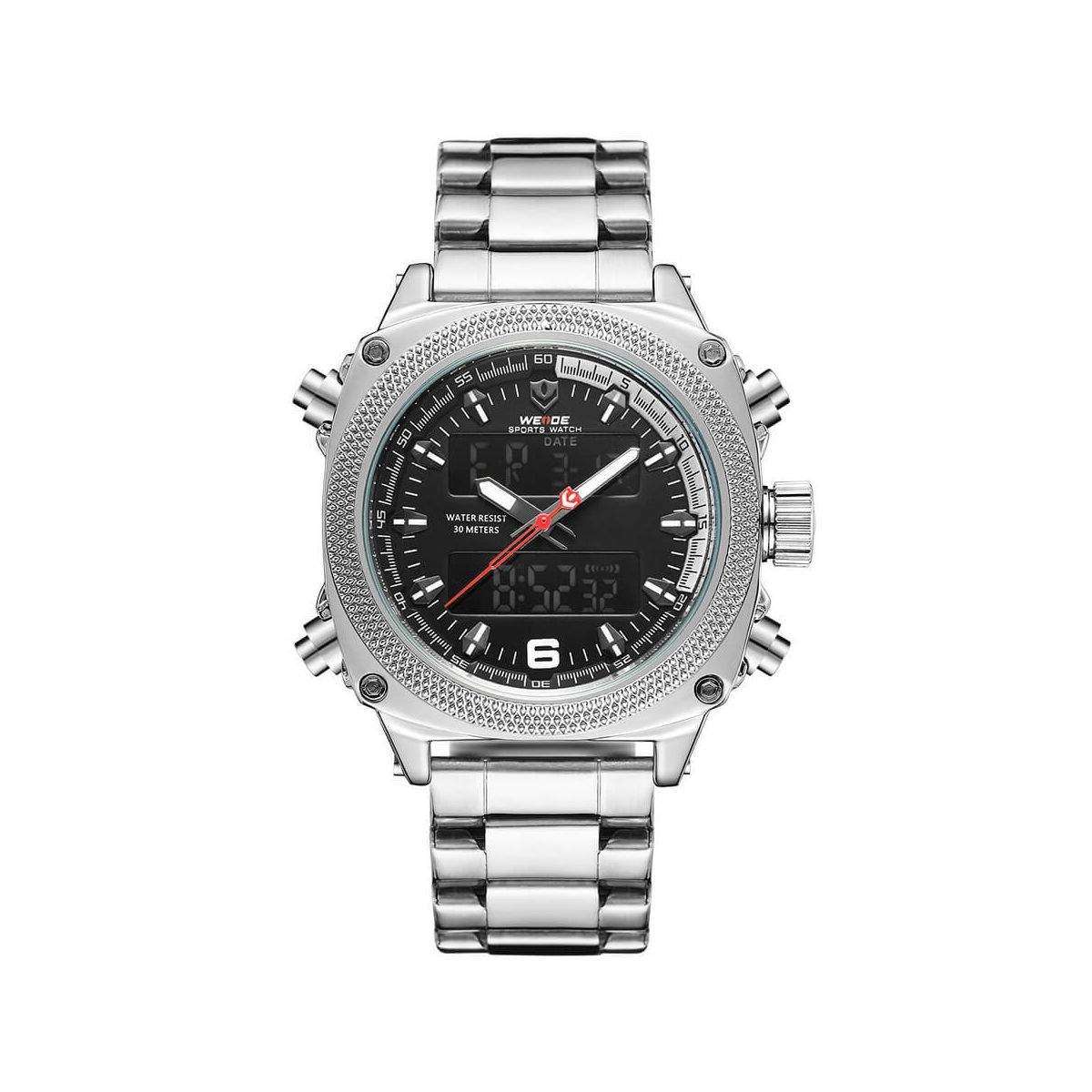 Наручний годинник WEIDE - стильний аксесуар, безумовно є невід'ємним атрибутом будь-якого сучасного чоловіка. Неймовірний брутальний дизайн, безліч функцій і незрівнянна практичність. Запорукою якості годинника є японський механізм Miyota в корпусі з нержавіючої сталі. Протиударні, водонепроникні моделі годин WEIDE володіють стійкістю до магнітного поля і є справжньою знахідкою для брутальних чоловіків, які віддають перевагу активний спосіб життя. Годинник WEIDE - збираються на трьох фабриках в Китаї і Японії з 2003року. З 2015 року Бренд займає лідируючі позиції з продажу в світі. Повна збірка і механізм виробляється в Японії. Кварцові годинники Weide здатні витримувати підвищені експлуатаційні навантаження, з легкістю витримають повсякденні будні і не залишать вас при заняттях спортом. Все завдяки бездоганній якості деталей і високому контролю якості в цілому. А головне, що такий необхідний аксесуар для чоловіка як годинник, від бренду WEIDE, доступний кожному.Відгуки про Годинник Weide Black WH7302-1C SS
