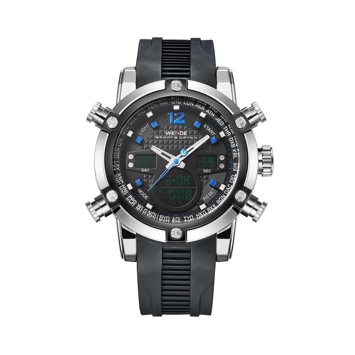 Наручний годинник WEIDE - стильний аксесуар, безумовно є невід'ємним атрибутом будь-якого сучасного чоловіка. Неймовірний брутальний дизайн, безліч функцій і незрівнянна практичність. Запорукою якості годинника є японський механізм Miyota в корпусі з нержавіючої сталі. Протиударні, водонепроникні моделі годин WEIDE володіють стійкістю до магнітного поля і є справжньою знахідкою для брутальних чоловіків, які віддають перевагу активний спосіб життя. Годинник WEIDE - збираються на трьох фабриках в Китаї і Японії з 2003року. З 2015 року Бренд займає лідируючі позиції з продажу в світі. Повна збірка і механізм виробляється в Японії. Кварцові годинники Weide здатні витримувати підвищені експлуатаційні навантаження, з легкістю витримають повсякденні будні і не залишать вас при заняттях спортом. Все завдяки бездоганній якості деталей і високому контролю якості в цілому. А головне, що такий необхідний аксесуар для чоловіка як годинник, від бренду WEIDE, доступний кожному.Відгуки про Годинник Weide Blue WH5205-11C