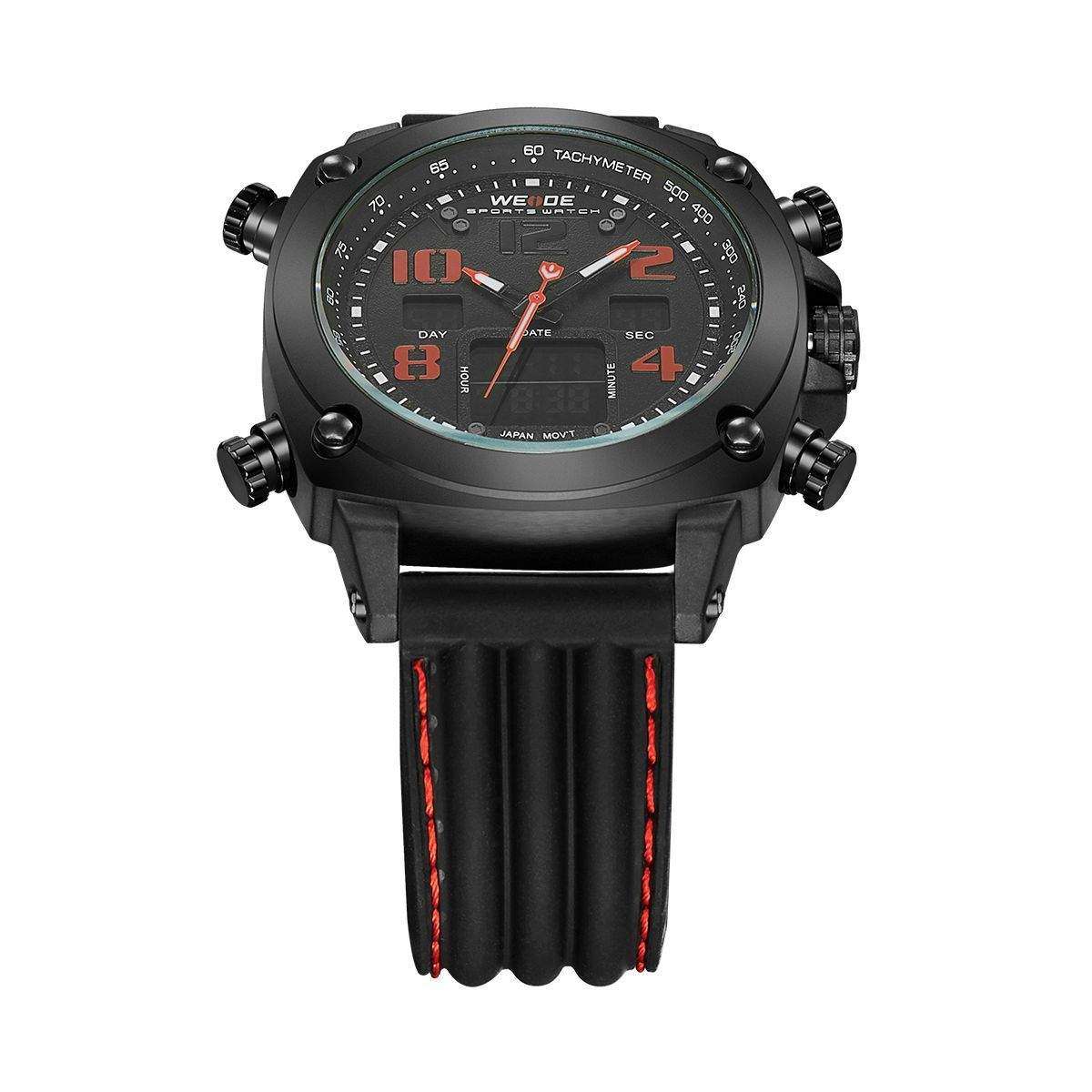 Наручний годинник WEIDE - стильний аксесуар, безумовно є невід'ємним атрибутом будь-якого сучасного чоловіка. Неймовірний брутальний дизайн, безліч функцій і незрівнянна практичність. Запорукою якості годинника є японський механізм Miyota в корпусі з нержавіючої сталі. Протиударні, водонепроникні моделі годин WEIDE володіють стійкістю до магнітного поля і є справжньою знахідкою для брутальних чоловіків, які віддають перевагу активний спосіб життя. Годинник WEIDE - збираються на трьох фабриках в Китаї і Японії з 2003року. З 2015 року Бренд займає лідируючі позиції з продажу в світі. Повна збірка і механізм виробляється в Японії. Кварцові годинники Weide здатні витримувати підвищені експлуатаційні навантаження, з легкістю витримають повсякденні будні і не залишать вас при заняттях спортом. Все завдяки бездоганній якості деталей і високому контролю якості в цілому. А головне, що такий необхідний аксесуар для чоловіка як годинник, від бренду WEIDE, доступний кожному.Відгуки про Годинник Weide Red WH5208B-2C