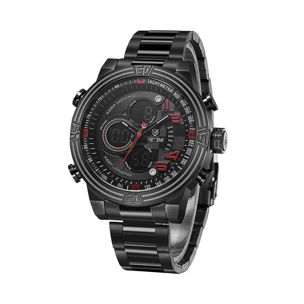Наручний годинник WEIDE - стильний аксесуар, безумовно є невід'ємним атрибутом будь-якого сучасного чоловіка. Неймовірний брутальний дизайн, безліч функцій і незрівнянна практичність. Запорукою якості годинника є японський механізм Miyota в корпусі з нержавіючої сталі. Протиударні, водонепроникні моделі годин WEIDE володіють стійкістю до магнітного поля і є справжньою знахідкою для брутальних чоловіків, які віддають перевагу активний спосіб життя. Годинник WEIDE - збираються на трьох фабриках в Китаї і Японії з 2003року. З 2015 року Бренд займає лідируючі позиції з продажу в світі. Повна збірка і механізм виробляється в Японії. Кварцові годинники Weide здатні витримувати підвищені експлуатаційні навантаження, з легкістю витримають повсякденні будні і не залишать вас при заняттях спортом. Все завдяки бездоганній якості деталей і високому контролю якості в цілому. А головне, що такий необхідний аксесуар для чоловіка як годинник, від бренду WEIDE, доступний кожному.Відгуки про Годинник Weide Red WH5209B-2C SS