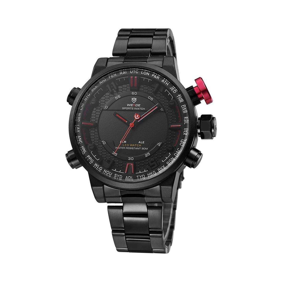 Наручний годинник WEIDE - стильний аксесуар, безумовно є невід'ємним атрибутом будь-якого сучасного чоловіка. Неймовірний брутальний дизайн, безліч функцій і незрівнянна практичність. Запорукою якості годинника є японський механізм Miyota в корпусі з нержавіючої сталі. Протиударні, водонепроникні моделі годин WEIDE володіють стійкістю до магнітного поля і є справжньою знахідкою для брутальних чоловіків, які віддають перевагу активний спосіб життя. Годинник WEIDE - збираються на трьох фабриках в Китаї і Японії з 2003року. З 2015 року Бренд займає лідируючі позиції з продажу в світі. Повна збірка і механізм виробляється в Японії. Кварцові годинники Weide здатні витримувати підвищені експлуатаційні навантаження, з легкістю витримають повсякденні будні і не залишать вас при заняттях спортом. Все завдяки бездоганній якості деталей і високому контролю якості в цілому. А головне, що такий необхідний аксесуар для чоловіка як годинник, від бренду WEIDE, доступний кожному.Відгуки про Годинник Weide Red WH6402B-2C SS
