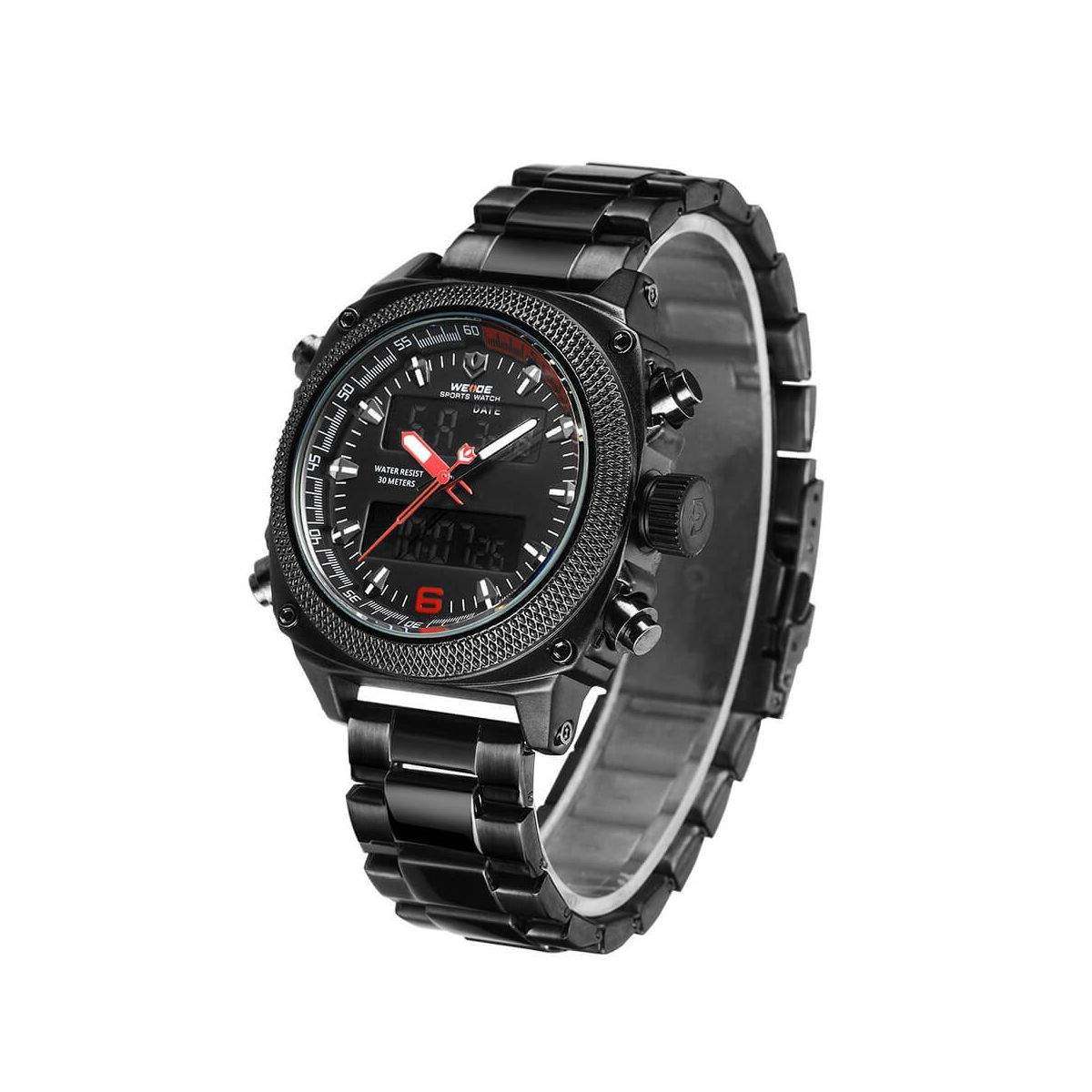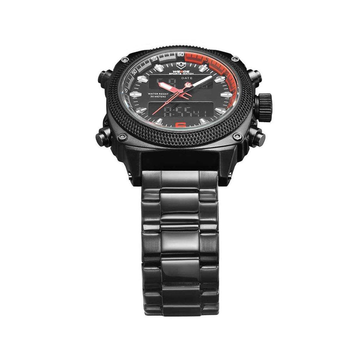 Наручний годинник WEIDE - стильний аксесуар, безумовно є невід'ємним атрибутом будь-якого сучасного чоловіка. Неймовірний брутальний дизайн, безліч функцій і незрівнянна практичність. Запорукою якості годинника є японський механізм Miyota в корпусі з нержавіючої сталі. Протиударні, водонепроникні моделі годин WEIDE володіють стійкістю до магнітного поля і є справжньою знахідкою для брутальних чоловіків, які віддають перевагу активний спосіб життя. Годинник WEIDE - збираються на трьох фабриках в Китаї і Японії з 2003року. З 2015 року Бренд займає лідируючі позиції з продажу в світі. Повна збірка і механізм виробляється в Японії. Кварцові годинники Weide здатні витримувати підвищені експлуатаційні навантаження, з легкістю витримають повсякденні будні і не залишать вас при заняттях спортом. Все завдяки бездоганній якості деталей і високому контролю якості в цілому. А головне, що такий необхідний аксесуар для чоловіка як годинник, від бренду WEIDE, доступний кожному.Відгуки про Годинник Weide Red WH7302B-2C SS
