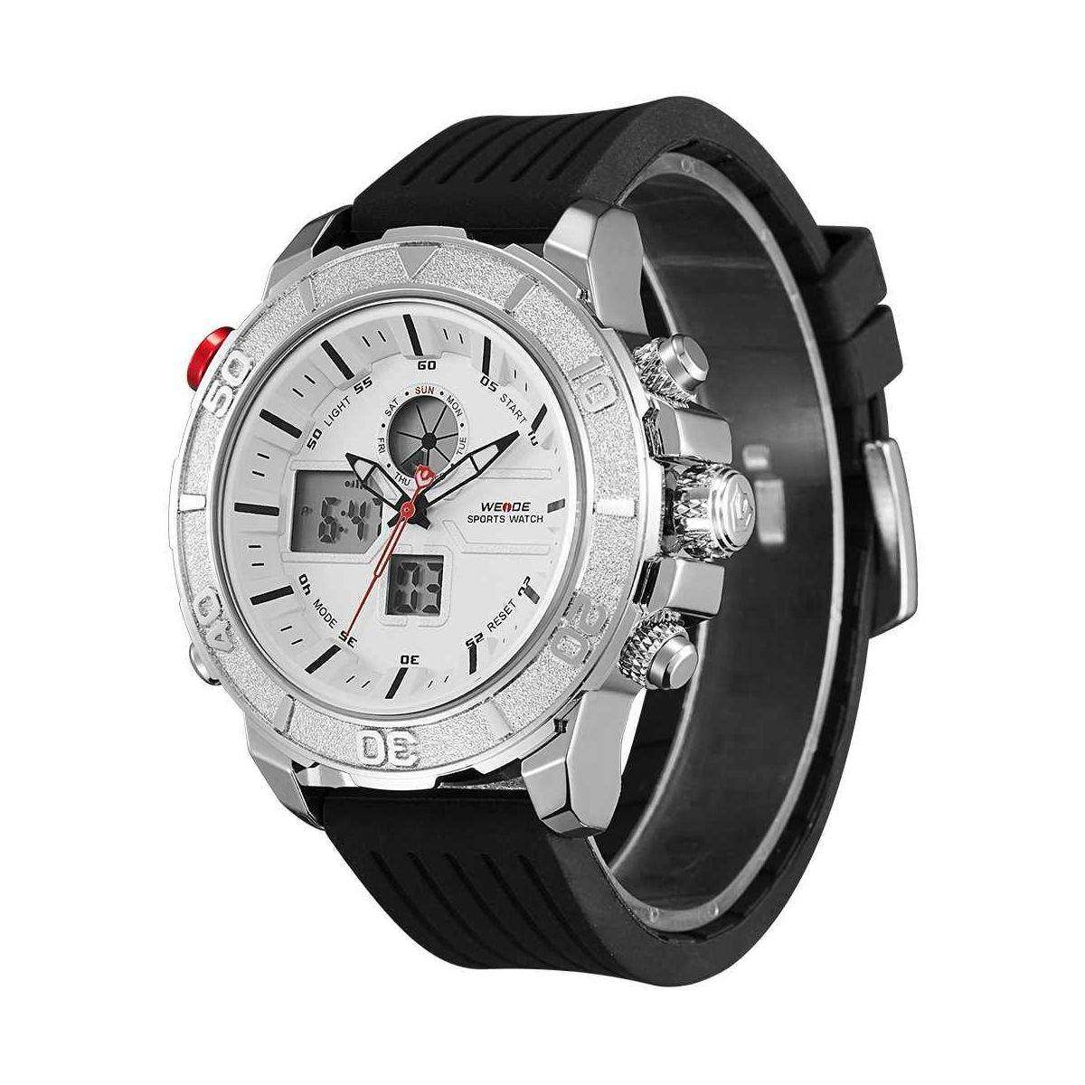 Наручний годинник WEIDE - стильний аксесуар, безумовно є невід'ємним атрибутом будь-якого сучасного чоловіка. Неймовірний брутальний дизайн, безліч функцій і незрівнянна практичність. Запорукою якості годинника є японський механізм Miyota в корпусі з нержавіючої сталі. Протиударні, водонепроникні моделі годин WEIDE володіють стійкістю до магнітного поля і є справжньою знахідкою для брутальних чоловіків, які віддають перевагу активний спосіб життя. Годинник WEIDE - збираються на трьох фабриках в Китаї і Японії з 2003року. З 2015 року Бренд займає лідируючі позиції з продажу в світі. Повна збірка і механізм виробляється в Японії. Кварцові годинники Weide здатні витримувати підвищені експлуатаційні навантаження, з легкістю витримають повсякденні будні і не залишать вас при заняттях спортом. Все завдяки бездоганній якості деталей і високому контролю якості в цілому. А головне, що такий необхідний аксесуар для чоловіка як годинник, від бренду WEIDE, доступний кожному.Відгуки про Годинник Weide White WH6108-4C