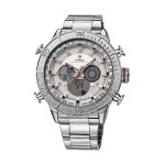 Наручний годинник WEIDE - стильний аксесуар, безумовно є невід'ємним атрибутом будь-якого сучасного чоловіка. Неймовірний брутальний дизайн, безліч функцій і незрівнянна практичність. Запорукою якості годинника є японський механізм Miyota в корпусі з нержавіючої сталі. Протиударні, водонепроникні моделі годин WEIDE володіють стійкістю до магнітного поля і є справжньою знахідкою для брутальних чоловіків, які віддають перевагу активний спосіб життя. Годинник WEIDE - збираються на трьох фабриках в Китаї і Японії з 2003року. З 2015 року Бренд займає лідируючі позиції з продажу в світі. Повна збірка і механізм виробляється в Японії. Кварцові годинники Weide здатні витримувати підвищені експлуатаційні навантаження, з легкістю витримають повсякденні будні і не залишать вас при заняттях спортом. Все завдяки бездоганній якості деталей і високому контролю якості в цілому. А головне, що такий необхідний аксесуар для чоловіка як годинник, від бренду WEIDE, доступний кожному.Відгуки про Годинник Weide White WH6308-2C SS