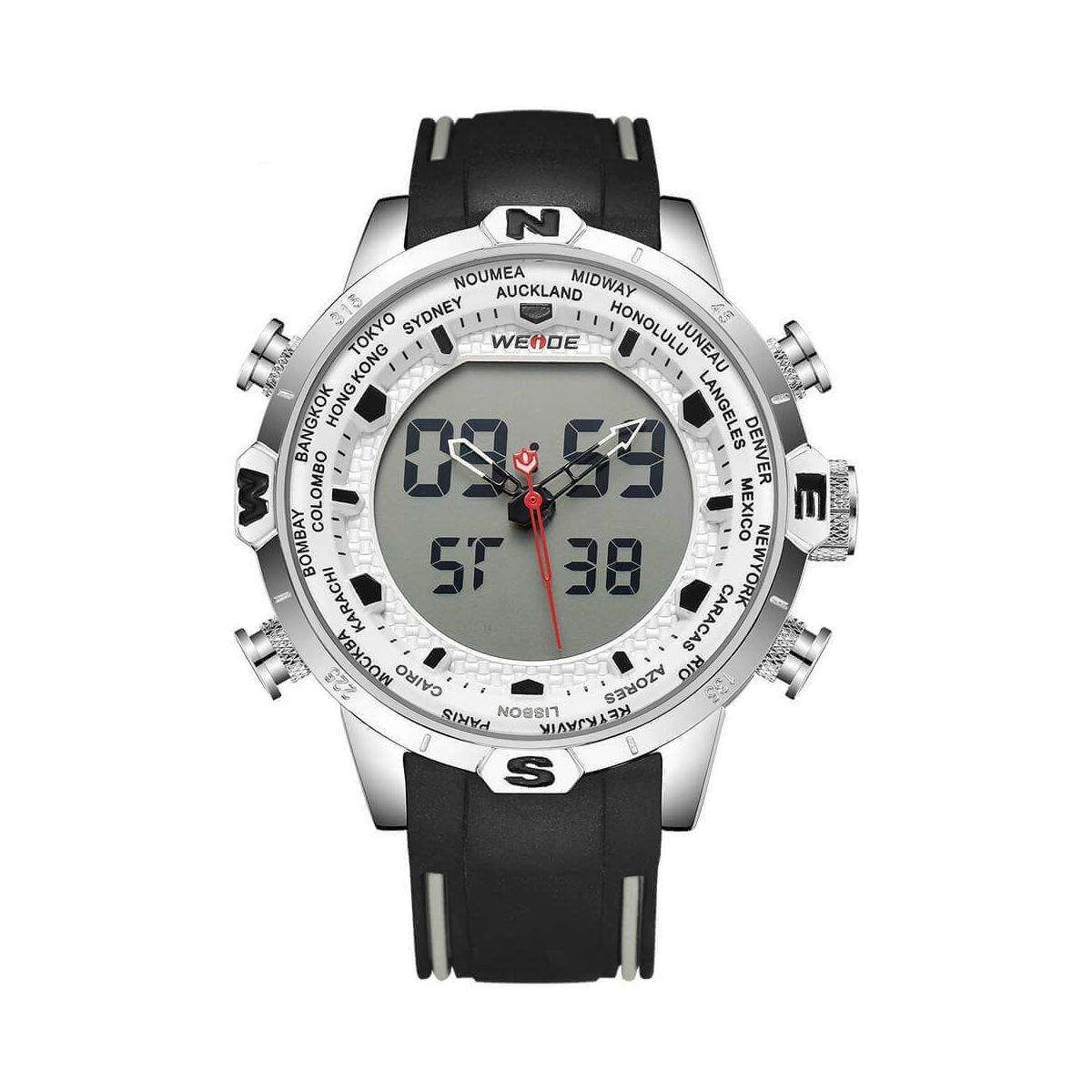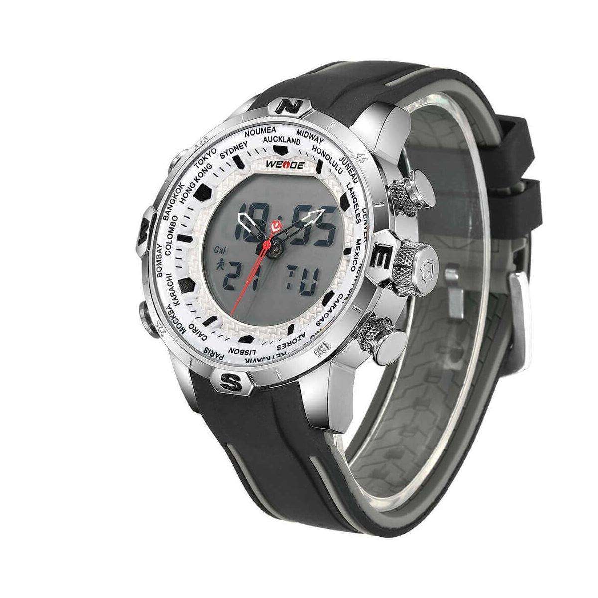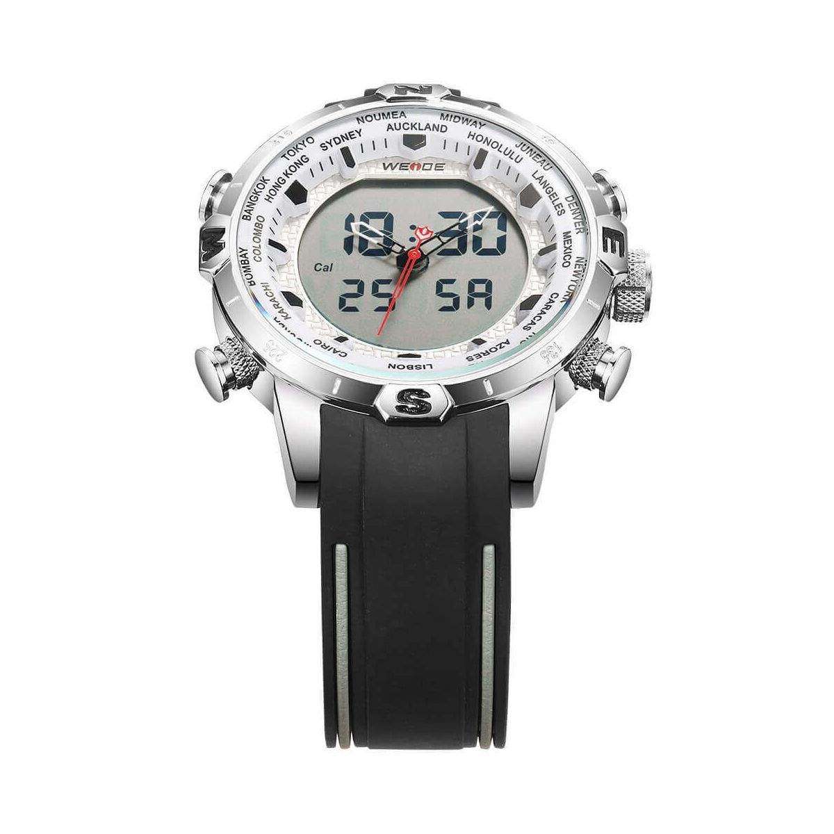 Наручний годинник WEIDE - стильний аксесуар, безумовно є невід'ємним атрибутом будь-якого сучасного чоловіка. Неймовірний брутальний дизайн, безліч функцій і незрівнянна практичність. Запорукою якості годинника є японський механізм Miyota в корпусі з нержавіючої сталі. Протиударні, водонепроникні моделі годин WEIDE володіють стійкістю до магнітного поля і є справжньою знахідкою для брутальних чоловіків, які віддають перевагу активний спосіб життя. Годинник WEIDE - збираються на трьох фабриках в Китаї і Японії з 2003року. З 2015 року Бренд займає лідируючі позиції з продажу в світі. Повна збірка і механізм виробляється в Японії. Кварцові годинники Weide здатні витримувати підвищені експлуатаційні навантаження, з легкістю витримають повсякденні будні і не залишать вас при заняттях спортом. Все завдяки бездоганній якості деталей і високому контролю якості в цілому. А головне, що такий необхідний аксесуар для чоловіка як годинник, від бренду WEIDE, доступний кожному.Відгуки про Годинник Weide White WH6310-2C