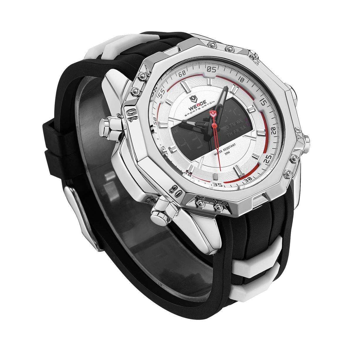 Наручний годинник WEIDE - стильний аксесуар, безумовно є невід'ємним атрибутом будь-якого сучасного чоловіка. Неймовірний брутальний дизайн, безліч функцій і незрівнянна практичність. Запорукою якості годинника є японський механізм Miyota в корпусі з нержавіючої сталі. Протиударні, водонепроникні моделі годин WEIDE володіють стійкістю до магнітного поля і є справжньою знахідкою для брутальних чоловіків, які віддають перевагу активний спосіб життя. Годинник WEIDE - збираються на трьох фабриках в Китаї і Японії з 2003року. З 2015 року Бренд займає лідируючі позиції з продажу в світі. Повна збірка і механізм виробляється в Японії. Кварцові годинники Weide здатні витримувати підвищені експлуатаційні навантаження, з легкістю витримають повсякденні будні і не залишать вас при заняттях спортом. Все завдяки бездоганній якості деталей і високому контролю якості в цілому. А головне, що такий необхідний аксесуар для чоловіка як годинник, від бренду WEIDE, доступний кожному.Відгуки про Годинник Weide White WH6406-2C