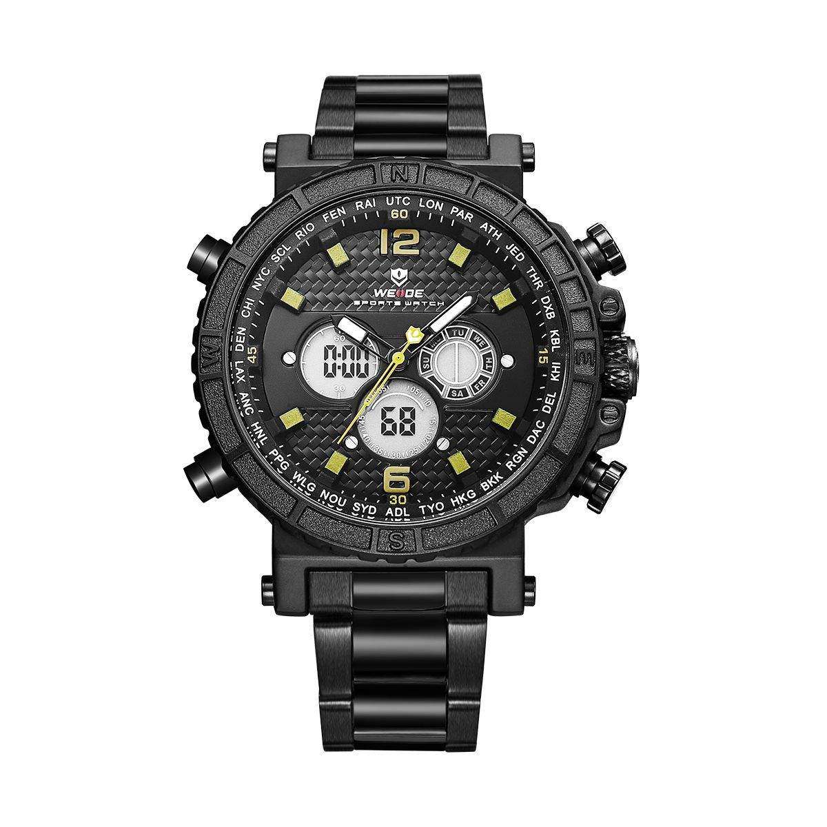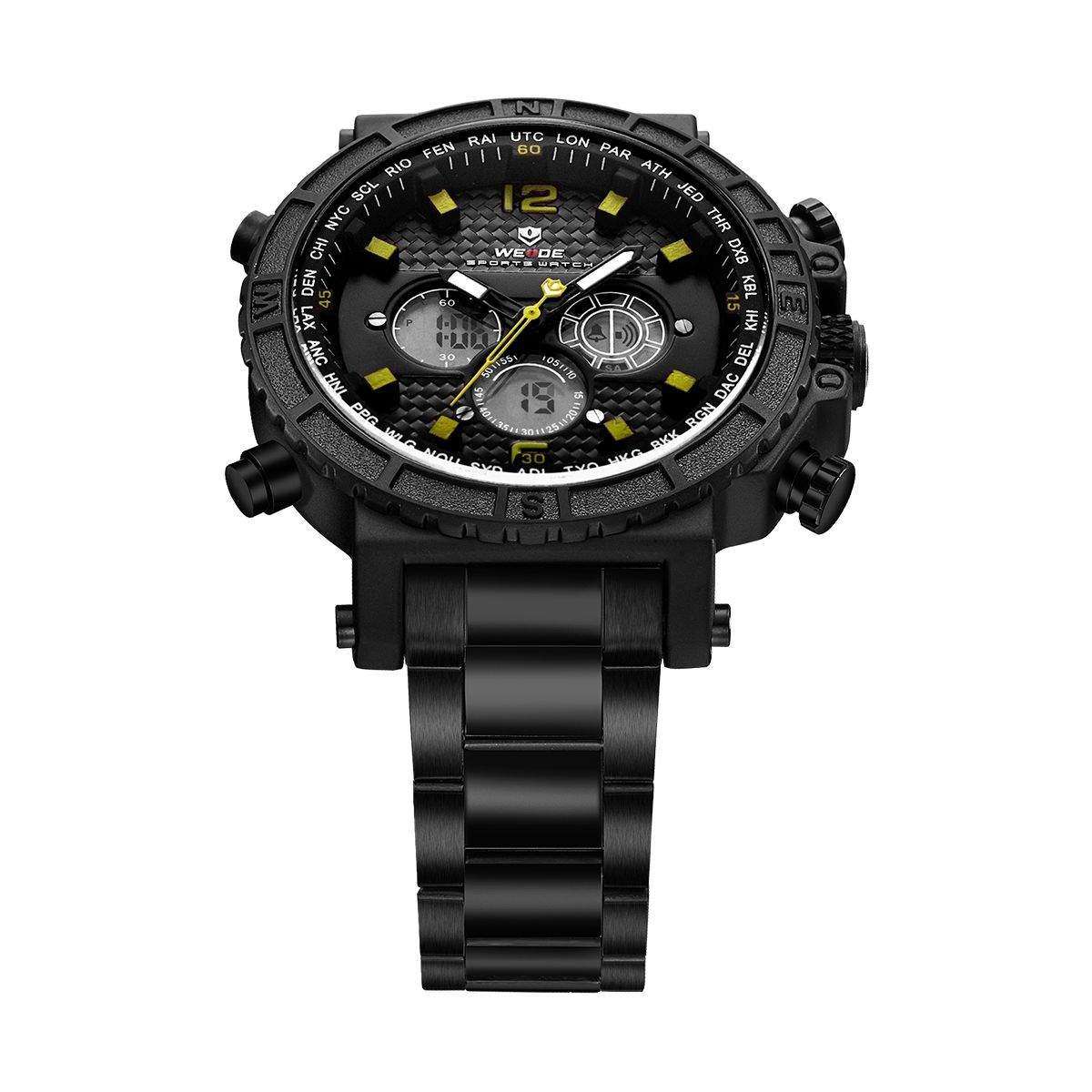 Наручний годинник WEIDE - стильний аксесуар, безумовно є невід'ємним атрибутом будь-якого сучасного чоловіка. Неймовірний брутальний дизайн, безліч функцій і незрівнянна практичність. Запорукою якості годинника є японський механізм Miyota в корпусі з нержавіючої сталі. Протиударні, водонепроникні моделі годин WEIDE володіють стійкістю до магнітного поля і є справжньою знахідкою для брутальних чоловіків, які віддають перевагу активний спосіб життя. Годинник WEIDE - збираються на трьох фабриках в Китаї і Японії з 2003року. З 2015 року Бренд займає лідируючі позиції з продажу в світі. Повна збірка і механізм виробляється в Японії. Кварцові годинники Weide здатні витримувати підвищені експлуатаційні навантаження, з легкістю витримають повсякденні будні і не залишать вас при заняттях спортом. Все завдяки бездоганній якості деталей і високому контролю якості в цілому. А головне, що такий необхідний аксесуар для чоловіка як годинник, від бренду WEIDE, доступний кожному.Відгуки про Годинник Weide Yellow WH6305B-3C SS