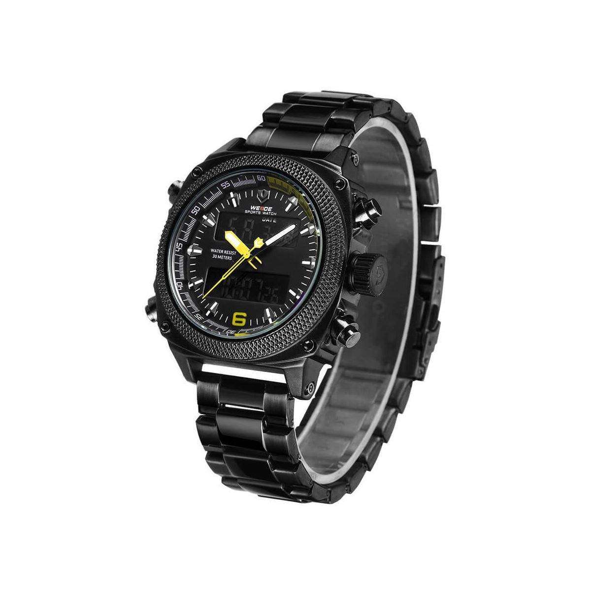 Наручний годинник WEIDE - стильний аксесуар, безумовно є невід'ємним атрибутом будь-якого сучасного чоловіка. Неймовірний брутальний дизайн, безліч функцій і незрівнянна практичність. Запорукою якості годинника є японський механізм Miyota в корпусі з нержавіючої сталі. Протиударні, водонепроникні моделі годин WEIDE володіють стійкістю до магнітного поля і є справжньою знахідкою для брутальних чоловіків, які віддають перевагу активний спосіб життя. Годинник WEIDE - збираються на трьох фабриках в Китаї і Японії з 2003року. З 2015 року Бренд займає лідируючі позиції з продажу в світі. Повна збірка і механізм виробляється в Японії. Кварцові годинники Weide здатні витримувати підвищені експлуатаційні навантаження, з легкістю витримають повсякденні будні і не залишать вас при заняттях спортом. Все завдяки бездоганній якості деталей і високому контролю якості в цілому. А головне, що такий необхідний аксесуар для чоловіка як годинник, від бренду WEIDE, доступний кожному.Відгуки про Годинник Weide Yellow WH7302B-3C SS