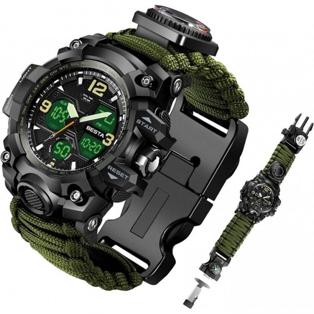 Основні характеристики Чоловічий водостійкий тактичний годинник Besta Life Pro з компасом