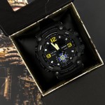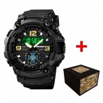 Корпус виготовлений з високоякісного полімера, а каучуковий ремінець забезпечує комфорт та надійність під час носки. Кругла форма корпусу з чорним кольором надає годиннику елегантного вигляду.